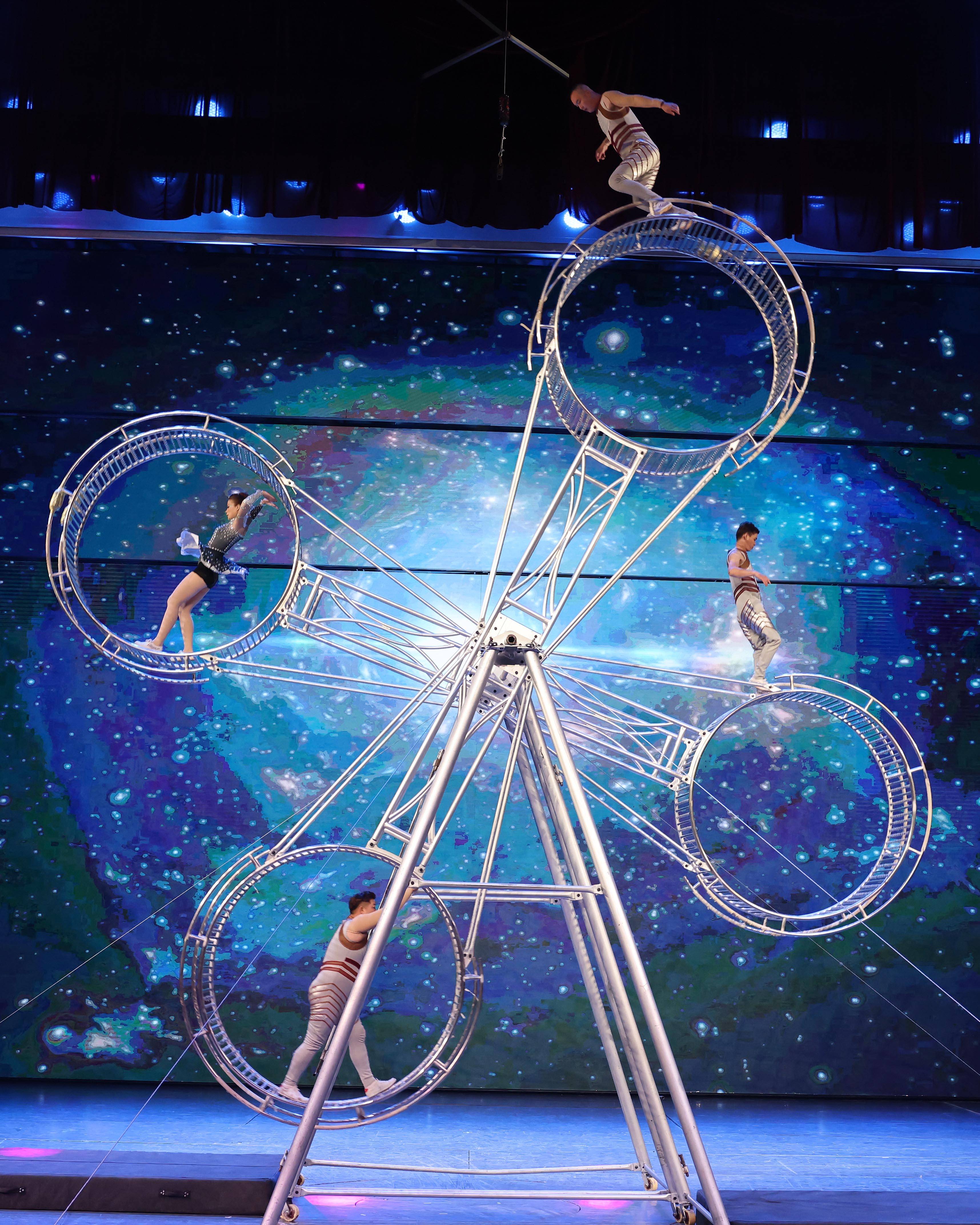 漫步城中可以尽情欣赏各具特色的杂技、马戏、戏法、气功、曲艺、独台戏、拉洋片、驯白鼠等艺术表演,身着清朝服饰的吴桥艺人们,说着当年卖艺求生的语言,把过去艺人四海为家的生活情景展视的淋漓尽致,我们在露天的杂技表演广场,看驯鼠、独台戏、驯猴、吹破天剧场的吹茶壶、鼻吹唢呐和口吃香烟、上刀山、吞剑、等,之后在魔术宫剧场、鬼手剧场和红牡丹剧场看室内表演,以及国术马戏场。
