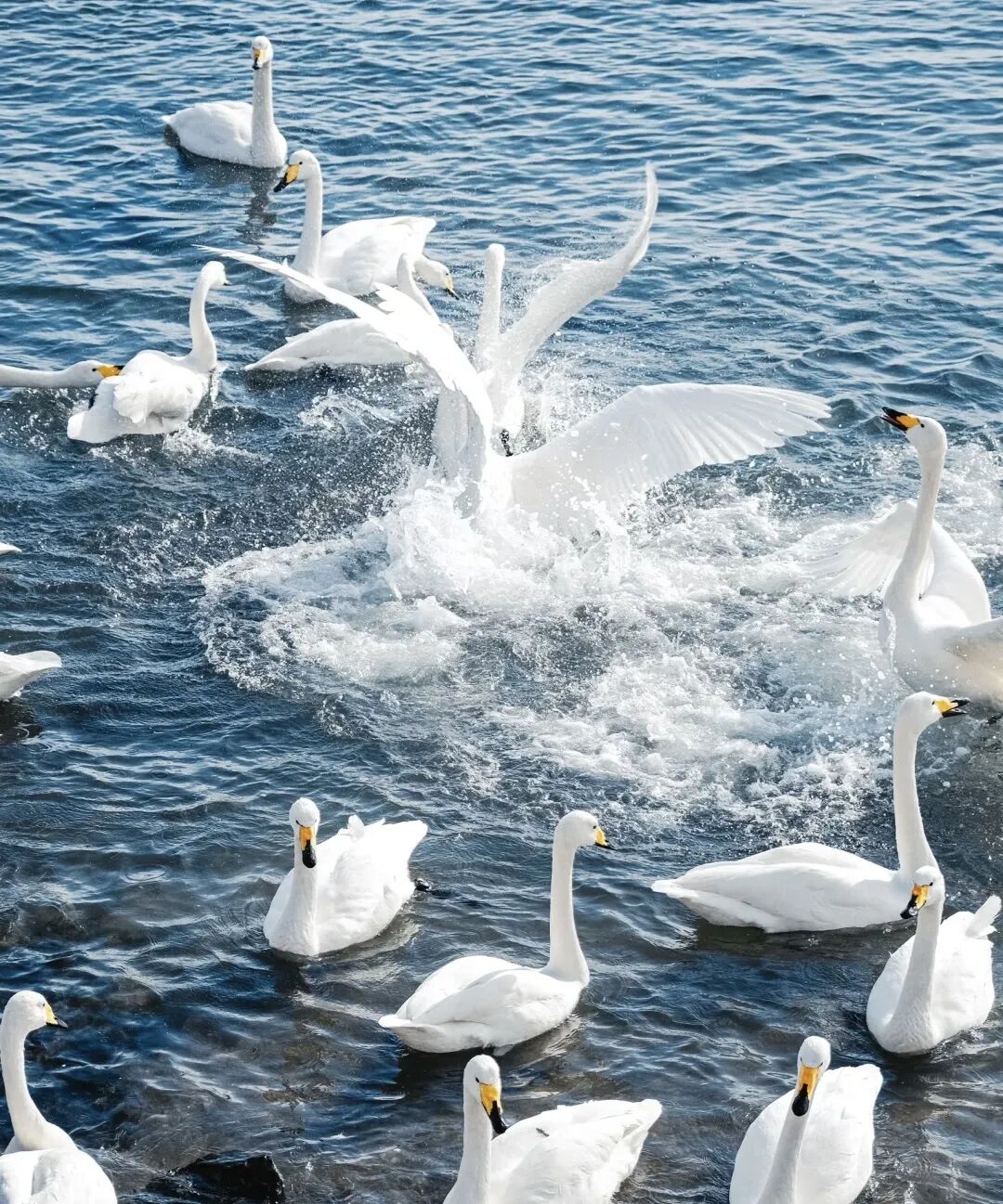 这些天鹅在碧波荡漾的海湾中嬉戏,与蓝天碧海融为体,形成了“天鹅湖”的美丽景观。冬日的烟墩角,不仅有白天鹅曼舞,还有渔船满载而归、海风拂面的静谧美景,是一个放松身心的绝佳之地。