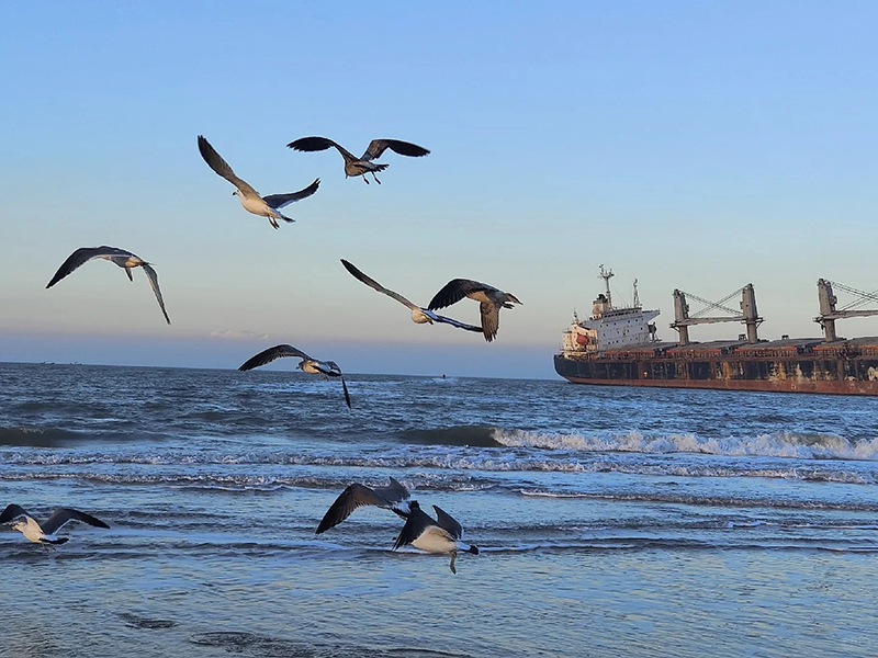 它是一艘海边搁浅的来自巴拿马籍的货轮,2022年9月,受环流影响搁浅于山东威海那香海海域,现在已经是威海最火的网红打卡点之一!