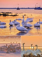 天鹅、白雪,冬季的大海别有一番美丽,整个观天鹅海岸线约3公里。您也可以自行到花斑彩石参观,花斑彩石是五亿多年前寒武纪燕山期火山喷发的火山岩。黄昏时我们在村里拍摄海草房及日落,这是所有摄影爱好者最喜欢的时段。