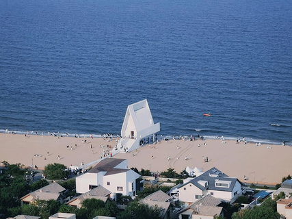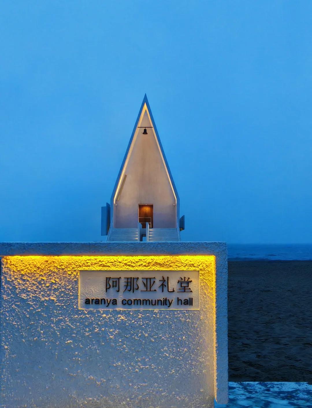 阿那亚有与海相伴的孤独图书馆,独特造型和静谧氛围成热门打卡点;洁白的阿那亚礼堂极具设计感,是艺术展、音乐会举办地。