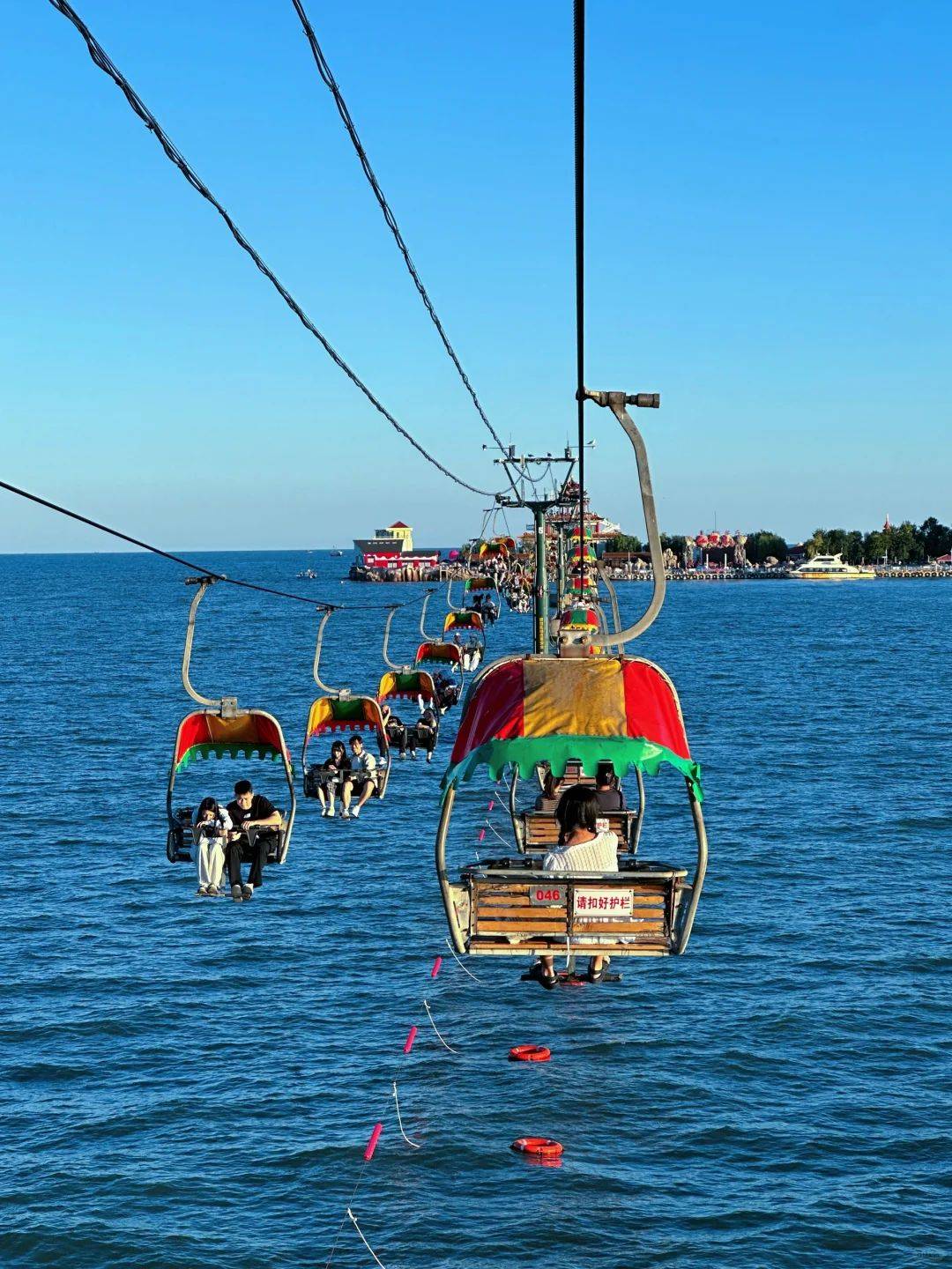 乘跨海索道可游览海螺仙子、三道关、海中海、海中喷泉、七星灵石、观海长廊、仙螺阁、临海栈道等造型古朴典雅的景观;登岛后乘电梯到达高56米的观光游乐塔上观看南戴河全景,体验海上蹦极,海上漂流和海上跳伞的惊险和刺激。