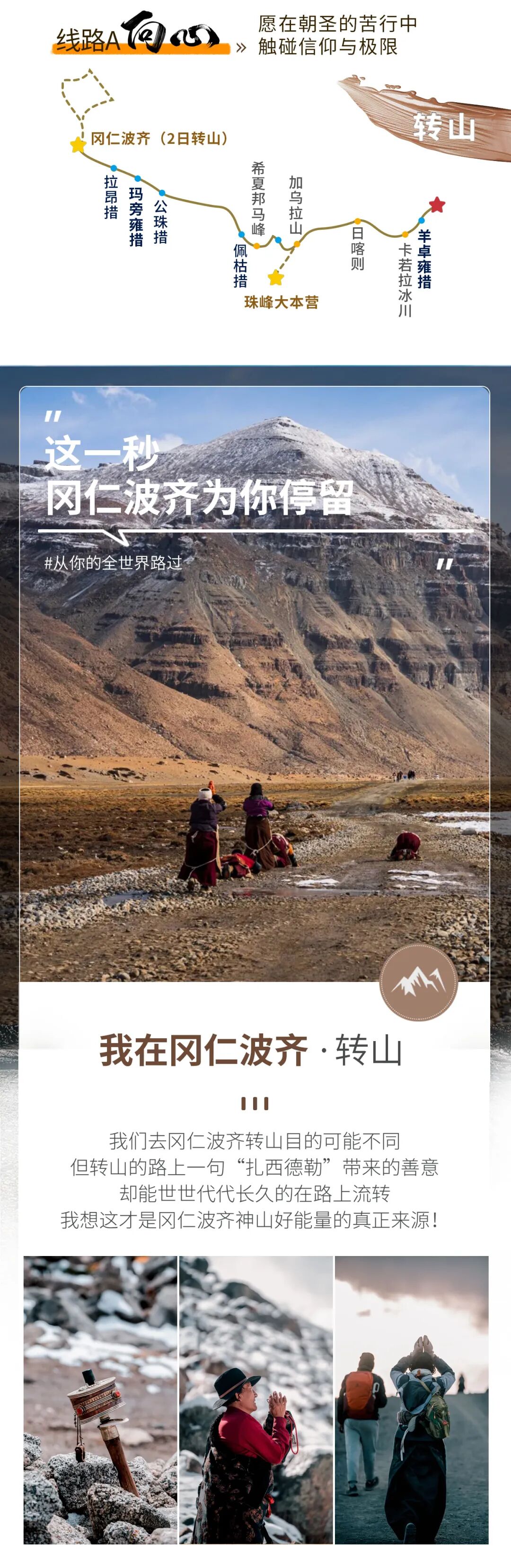 下午前往冈仁波齐,冈仁波齐是世界公认的神山,同时被中国西藏雍仲本教,印度教、藏传佛教、以及古耆那教认定为世界的中心。岗仁波齐并非这一地区最高的山峰,但是只有它终年积雪的峰顶能够在阳光照耀下闪耀着奇异的光芒,夺人眼目。夕阳下的纳木那尼峰与冈仁波齐神山遥相呼应,正是拍摄的好时机。