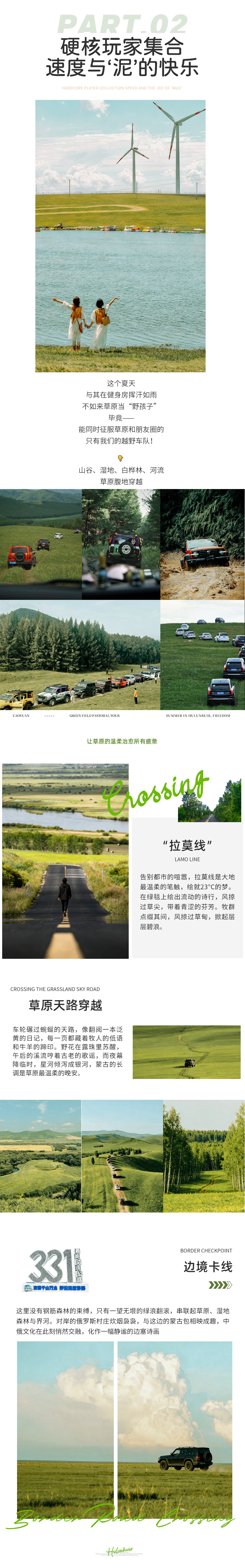 额尔古纳-深度自驾穿越-拉莫线-草原天路穿越(风之谷/笑脸河/白桦林)-边境卡线(边境公路穿越/远观太极图)(230KM,车程约3.5小时)-黑山头骑马2小时-草原提灯落日-烤全羊-篝火晚会