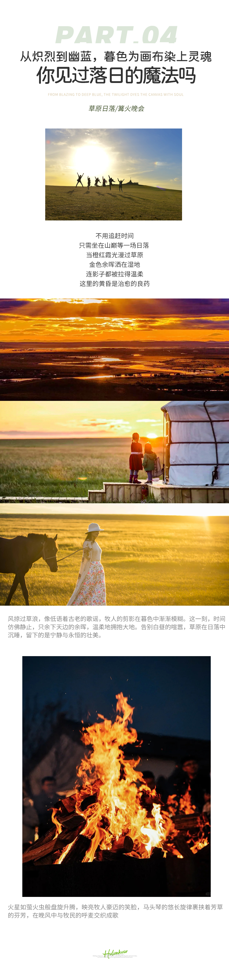 21:00 适时开始【篝火晚会】(7月1日-8月25日团期安排防火期或下雨等恶劣天气取消不退费用),大家围坐在篝火旁,大跳蒙古族舞蹈、伴随着欢快的祝酒歌歌声,让我们尽情释放着生活在城市的压力,让我们今晚好好狂欢!