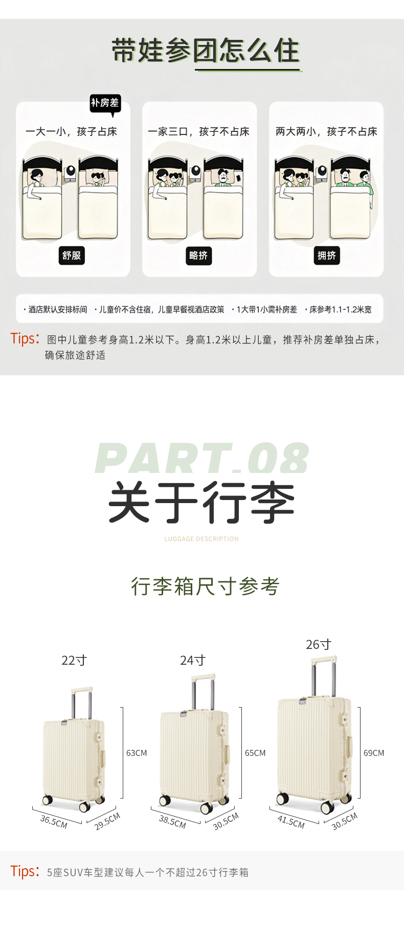 4、请每人携带24寸以下行李箱一个,如超出范围可能造成无法放进车辆后备箱,望悉知。