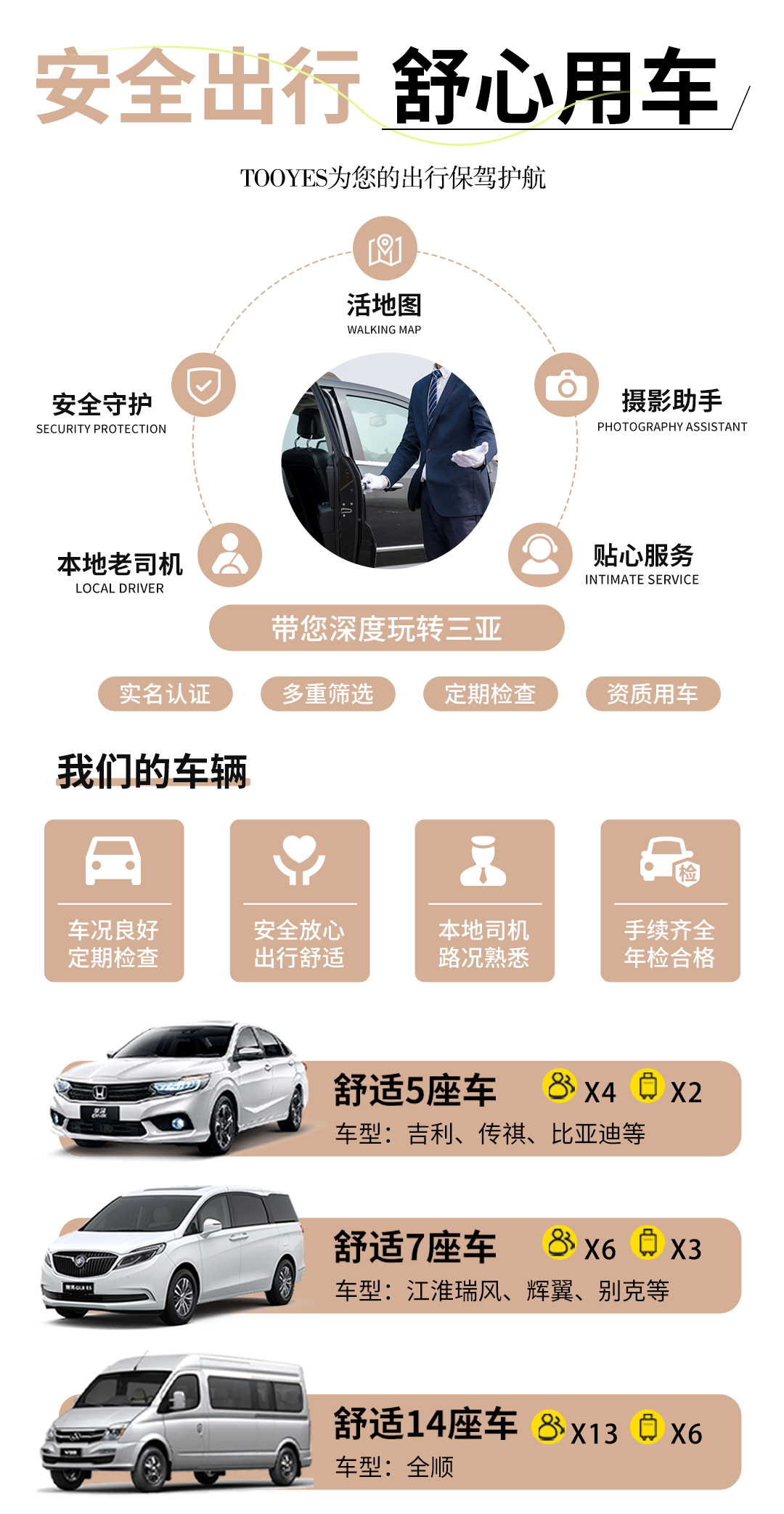 旅游交通 | 不指定车座,保证每人一正座,根据人数实际安排; |