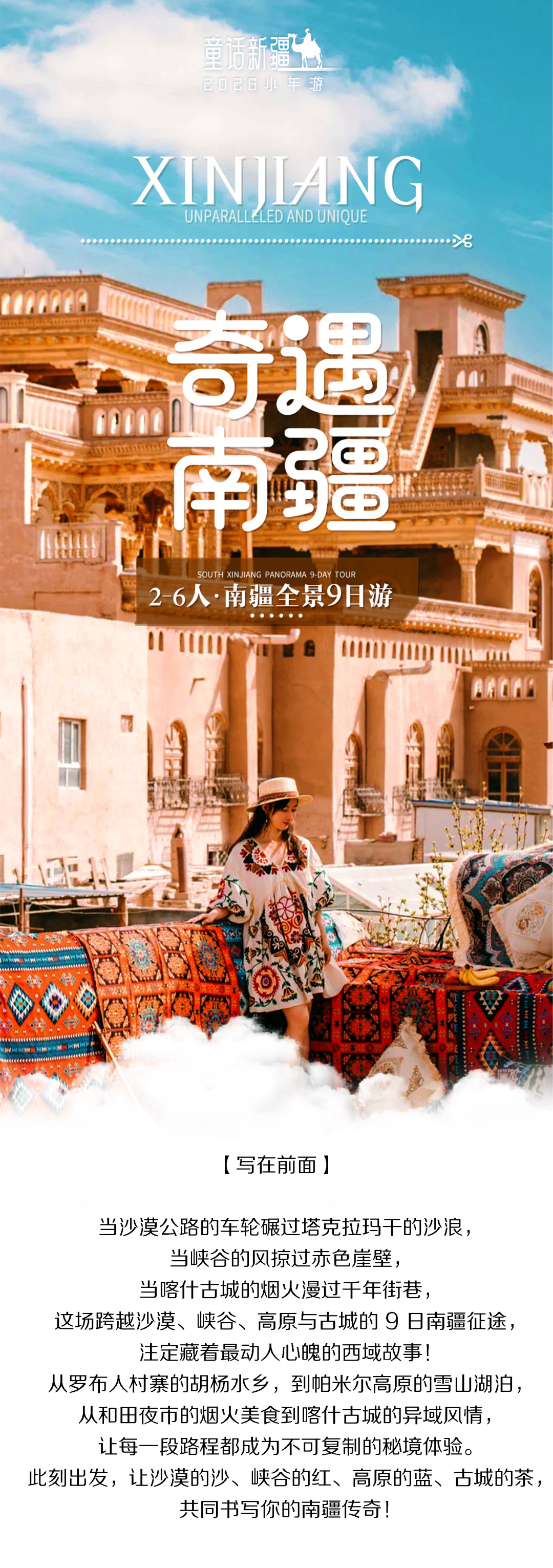 2. 建议订今日下午的航班离开,喀什古城的魅力需要你慢慢逛,细细品。市内游览,推荐景点:开城仪式、香妃园、高台民居、巴依老爷的家、空中花园、昆仑塔等。