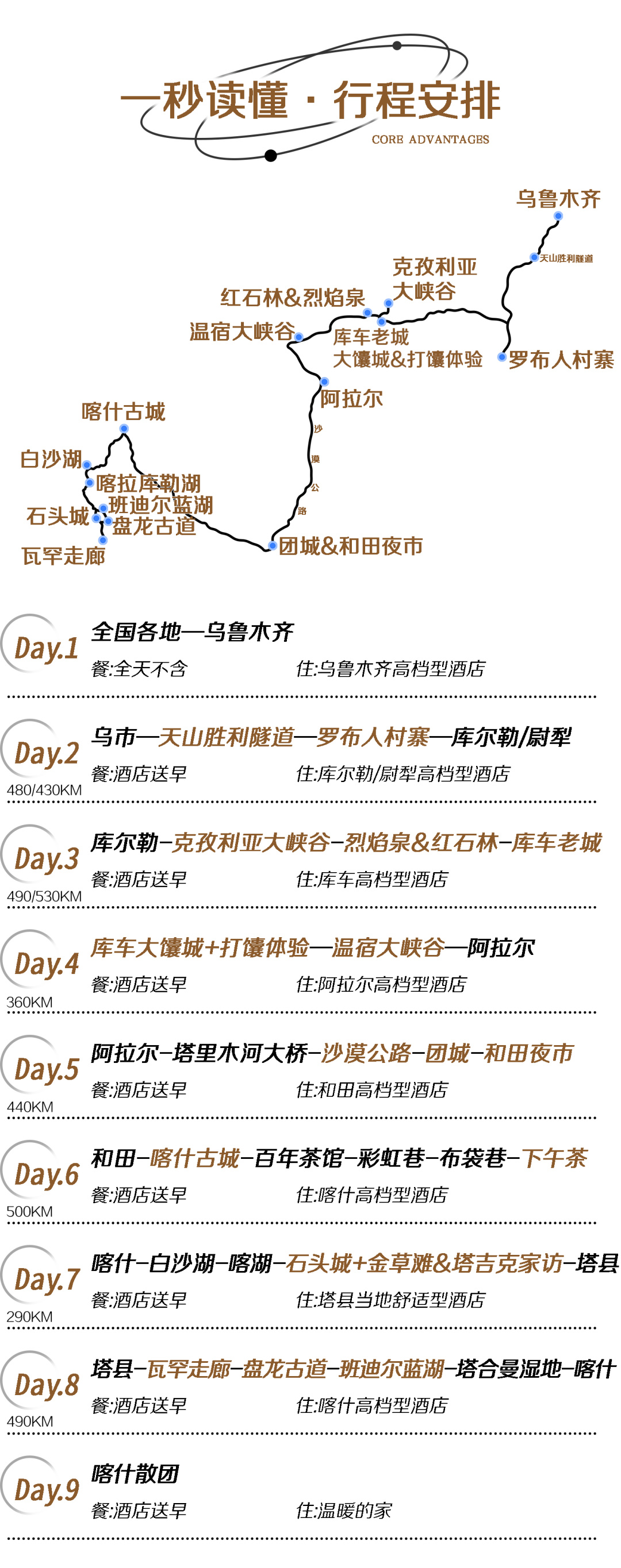 2:门票:全程景点首道大门票+区间车:罗布人村寨门票+区间车、克孜利亚大峡谷门票+区间车、克孜尔红石林+烈焰泉门票+区间车、库车大馕城门票、温宿大峡谷门票+区间车、帕米尔旅游区(石头城+金草滩)门票+区间车。(赠送大馕城打馕体验、喀什古城下午茶,塔吉克家访+换装体验,不去不退)。
