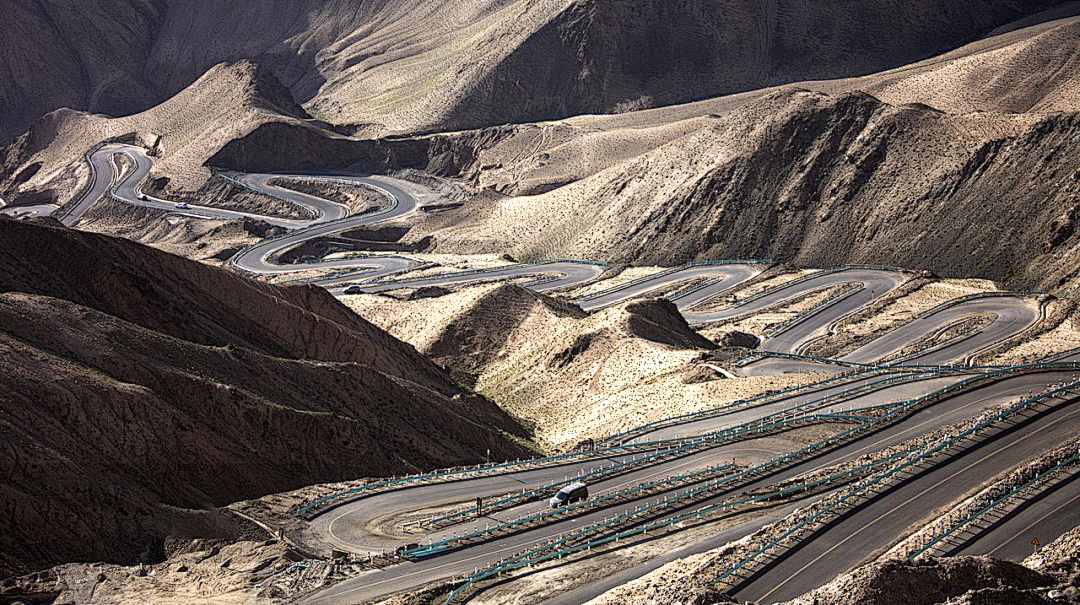 今日出发去瓦罕走廊打卡,瓦罕走廊是古丝绸之路的一部分,也是华夏文明与印度文明交流的重要通道。适时去网红打卡圣地——盘龙古道,这条公路拥有弯道600多个,其外型犹如一条黑色巨龙盘绕在昆仑山脉,一路蜿蜒而下,实在壮观。而后来到班迪尔蓝湖参观,班迪尔蓝湖做为帕米尔高原的小众风景,雪山、蓝湖、荒野,仿佛到了世界尽头,非常具有美感。后经过帕米尔之眼,这是一处由冰川侵蚀和风化作用形成的环形地貌,直径近百米,中心凹陷,突起的巨石,远观宛如一只凝视天空的“眼睛”,让人感觉到巨物恐惧症。后前往喀什,途中游玩塔合曼湿地,连绵不绝的雪山威然屹立着,蜿蜒的河流与青葱的牧场点缀其中,像极了一幅色彩鲜明的油画。抵达喀什后入住酒店。