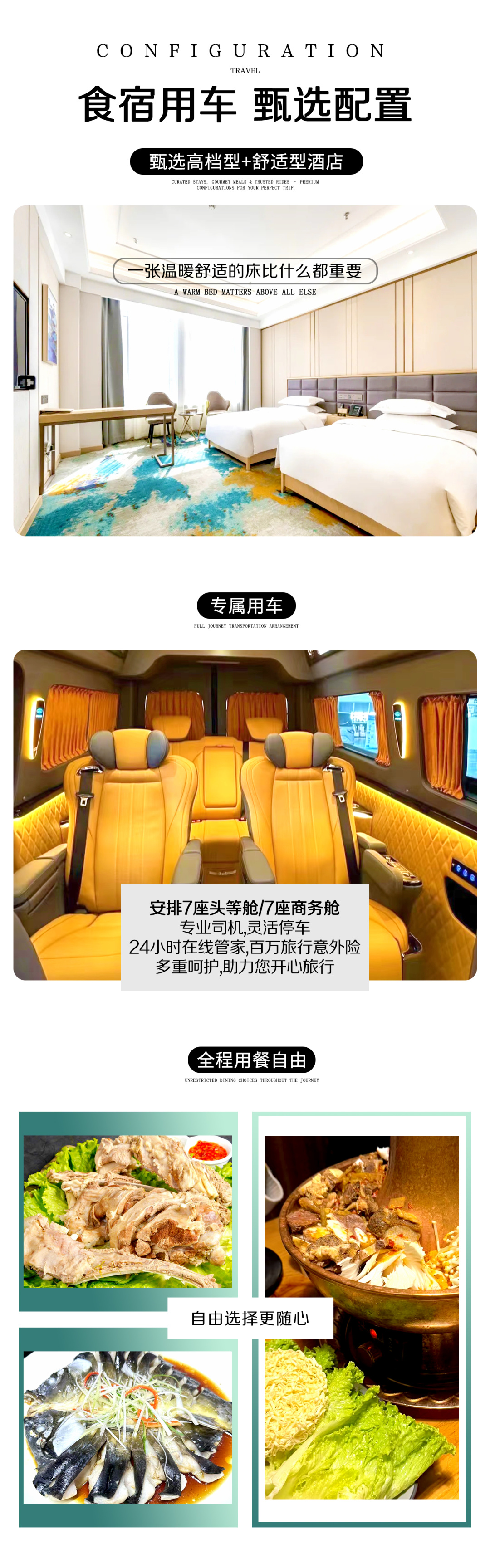 备注:高端定制,费用另议(含住宿升级、用车升级、跟拍等服务升级)。