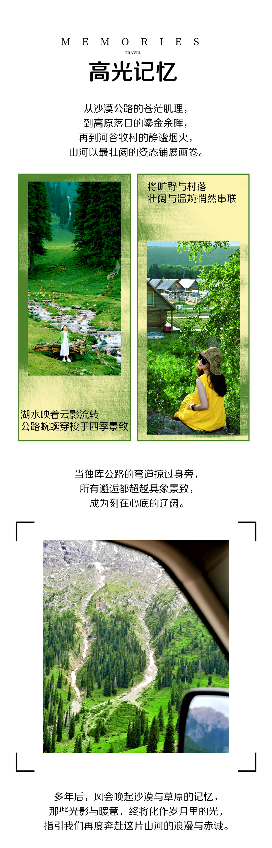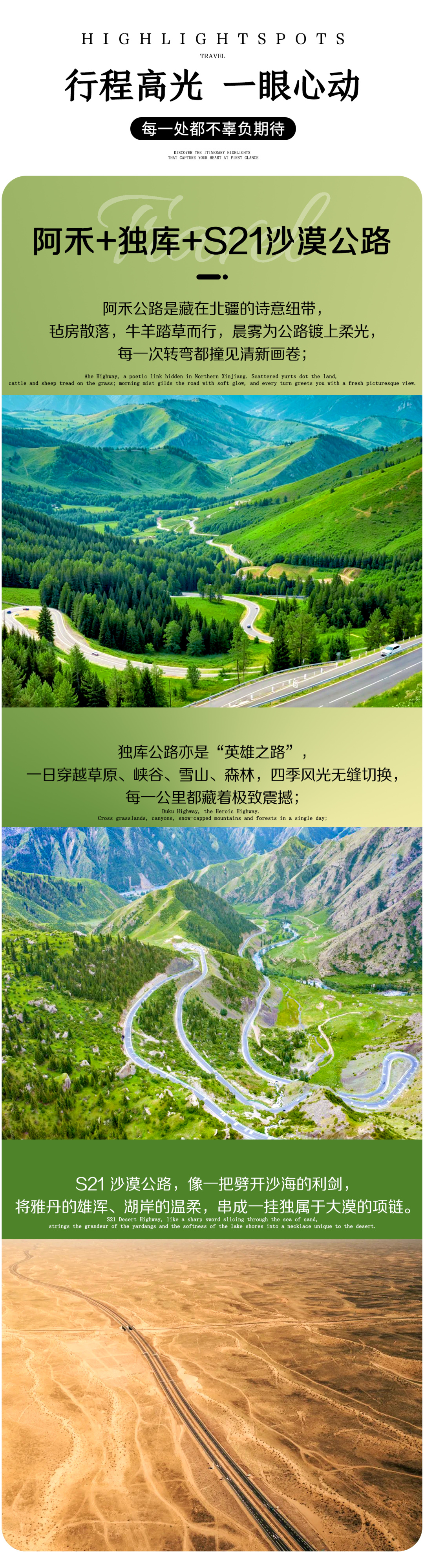 1. 独库公路沿途景色绝美,山路蜿蜒曲折,乘车请系好安全带,下车拍照时请注意来往车辆,确保安全。