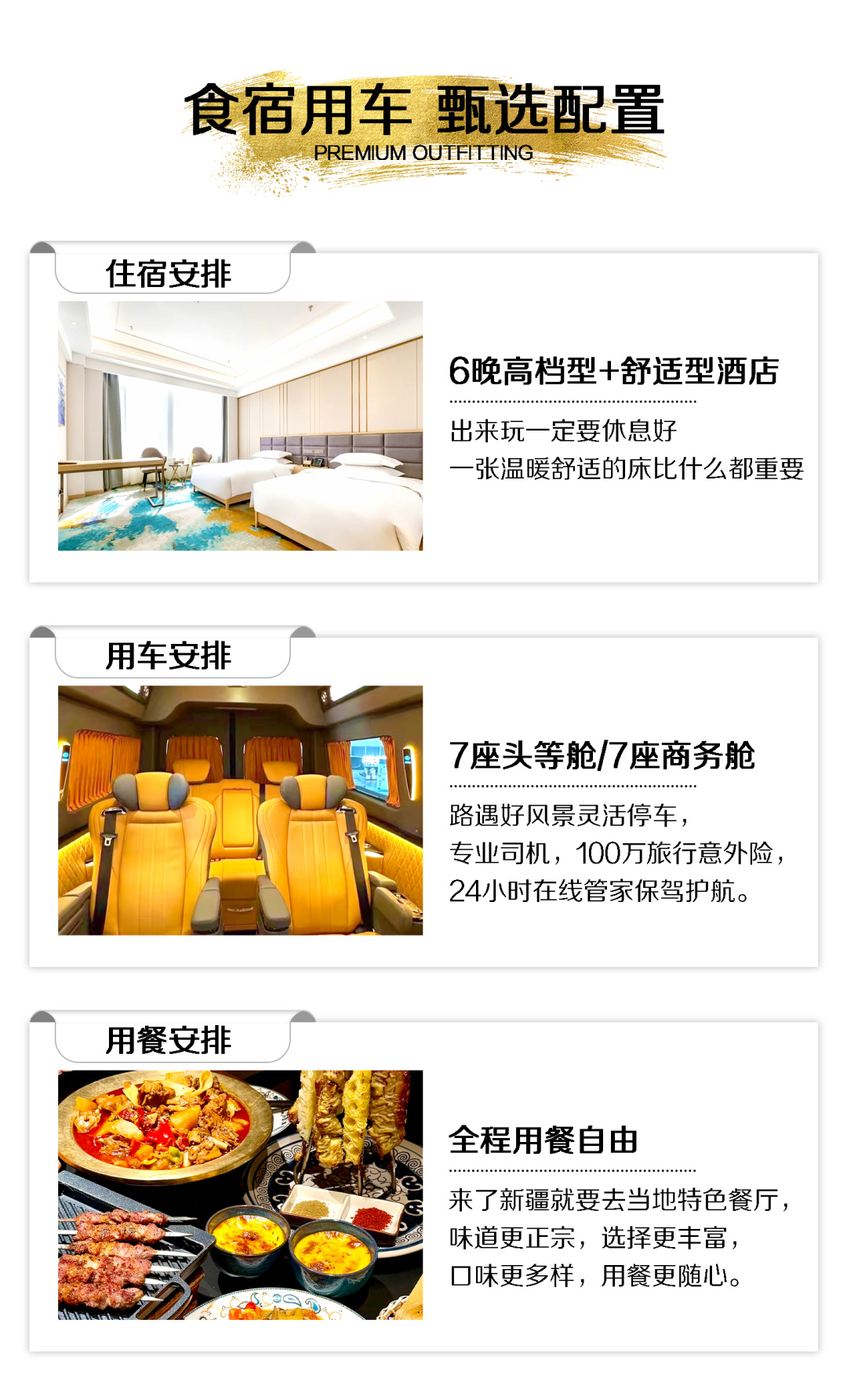 5.全程用餐不含,就是为了让大家有更多的机会去品尝当地美食,市区晚上建议大家三五结伴而行用餐,中午根据情况由司机推荐集体团餐或者路餐,常规午餐人均消费约30-40元左右,晚餐人均消费约40-50元左右,部分景区/住宿地因食材运输等原因,餐食消费较常规人均消费高10-20元左右(景区内建议大家集体吃团餐,经济划算)。