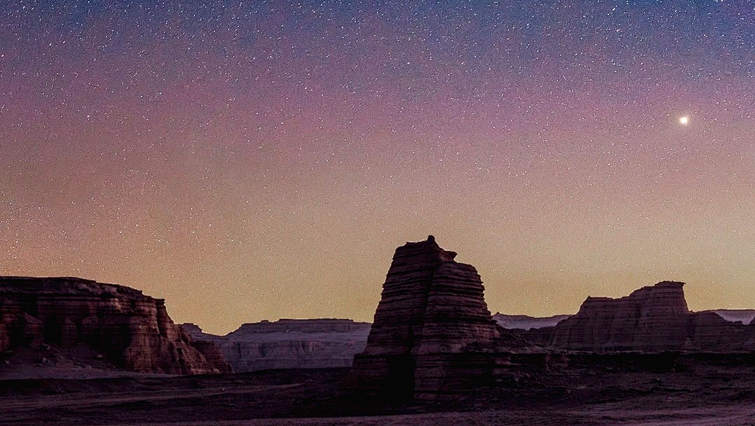 今日早起前往大海道景区,这里曾是汉代丝绸之路上的一条古道,唐代后逐渐停止使用。自那时起大海道成为荒无的无人区,过往的历史给这里留下了古城堡、烽燧、史前人类居住遗址以及震撼人心的雅丹地貌……由于这里的气候极度干旱,使得大海道如火星表面般毫无生命迹象。正是这样的荒凉吸引着无数玩家前往,去揭开古道无人区的神秘面纱,欣赏大自然的鬼斧神工。适时可以前往大海道的核心区,游玩神仙洞、外星人、回音壁以及荒漠中的绿洲水源地。今晚我们就住在大海道,由于这里视野宽阔、光污染小,肉眼就可以看到满天繁星、璀璨银河。
