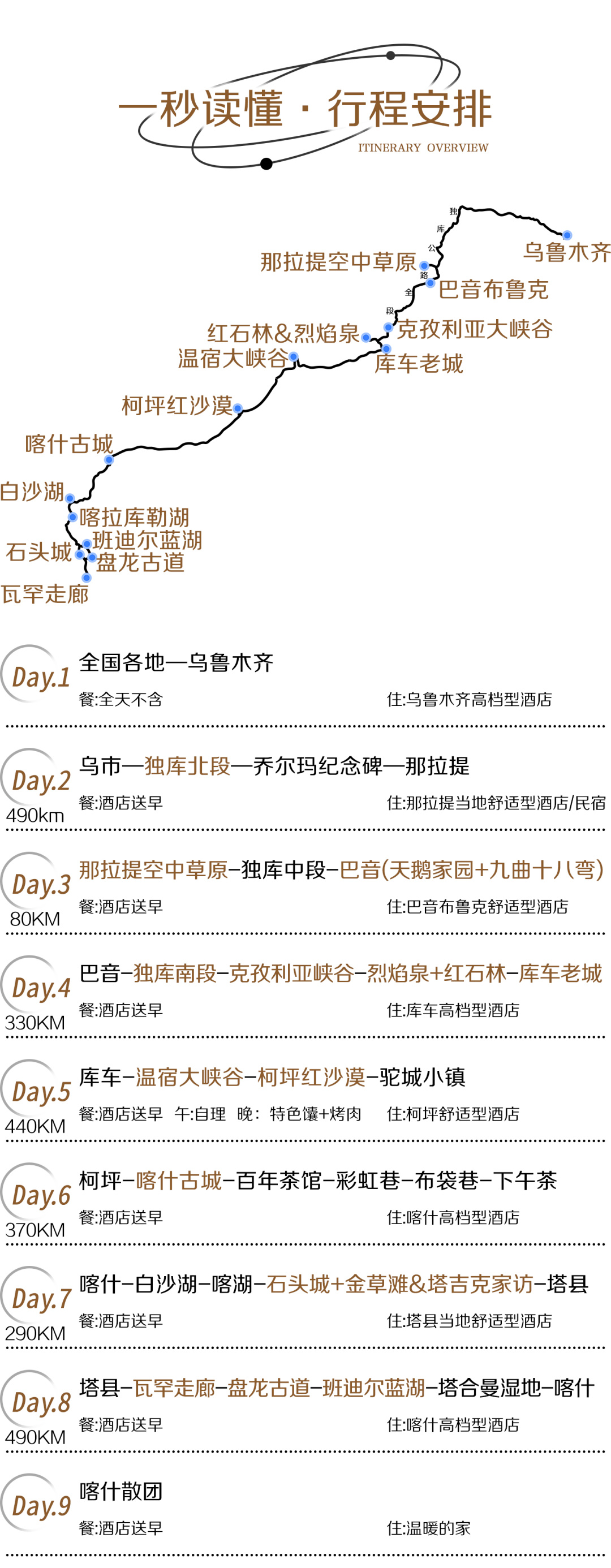 巴音布鲁克—独库南段—大小龙池—克孜利亚大峡谷—克孜尔红石林—烈焰泉—库车老城