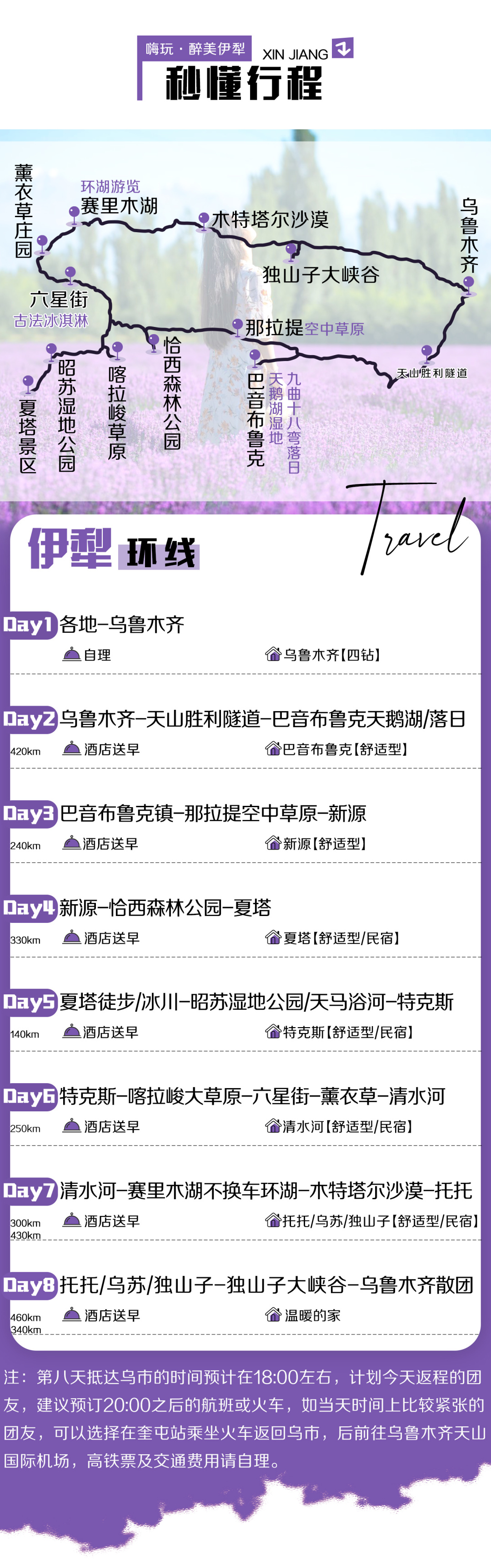 3. 独家赠送薰衣草花田门票,如薰衣草花期已过,不去不退,勿苛求。