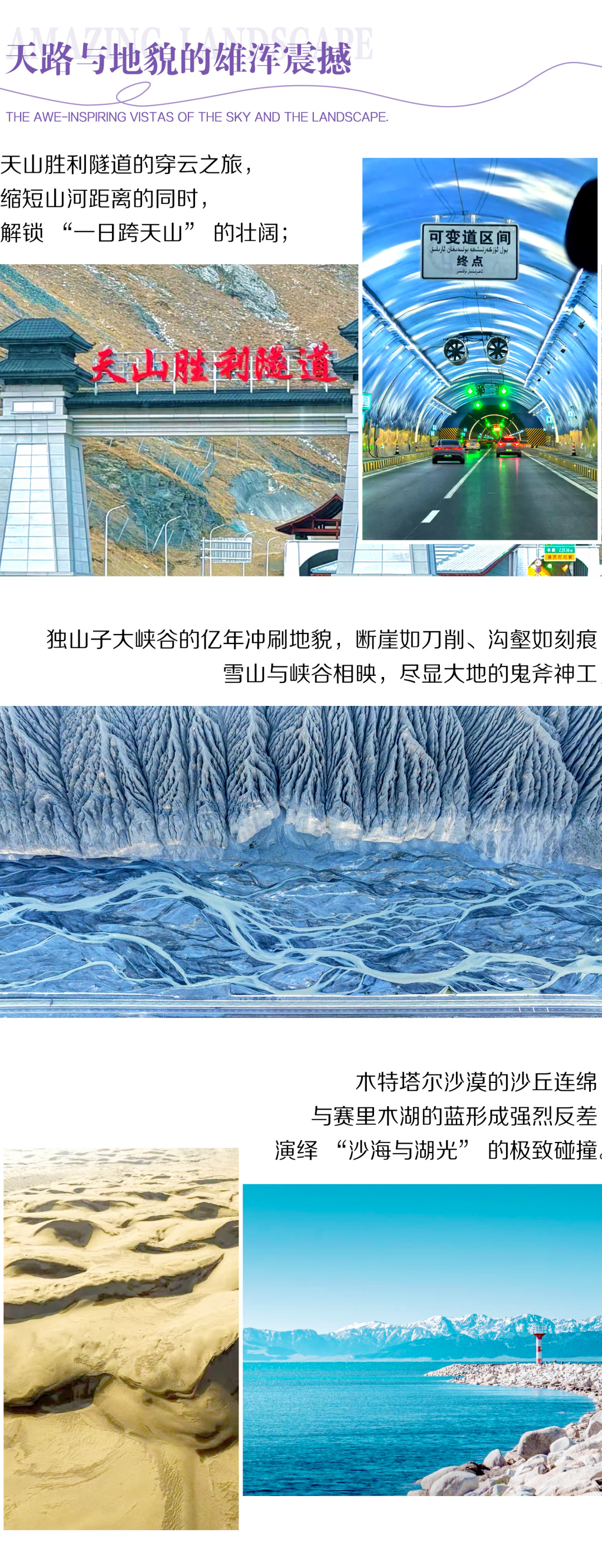 清水河—果子沟大桥—赛里木湖(不换车畅玩赛湖)—木特塔尔沙漠—托托/乌苏/独山子