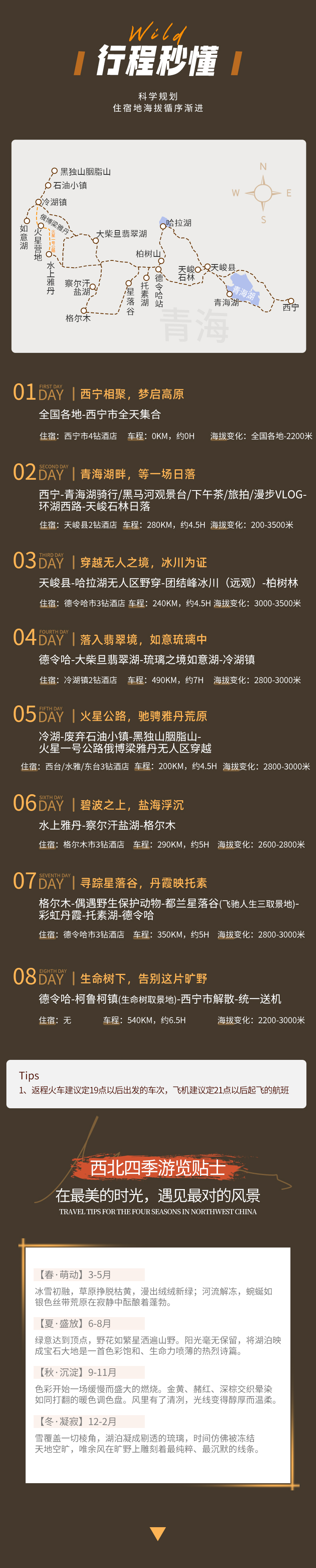 德令哈-(20km)柯鲁柯镇(生命树取景地)-(520km,约6.5h)西宁市解散