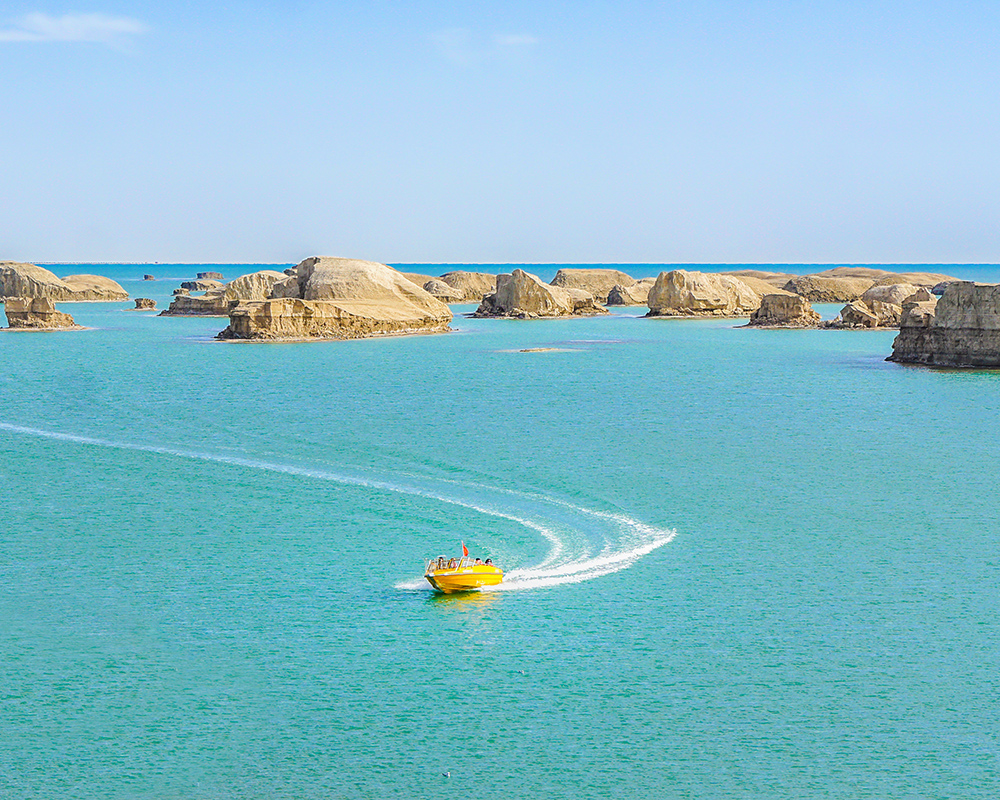 08:00随后到达【水上雅丹】,这是国内仅有的水上雅丹地貌群,由于塔达木盆地的地壳运动而让青海湖等地的湖水通过地下流入了这雅丹境内,才形成了我们眼前所见到的独特的水上雅丹地貌。湛蓝水面上的雅丹地貌一群群簇拥在一起,宛如万国舰队一般漂浮在水面上,壮观无比。
