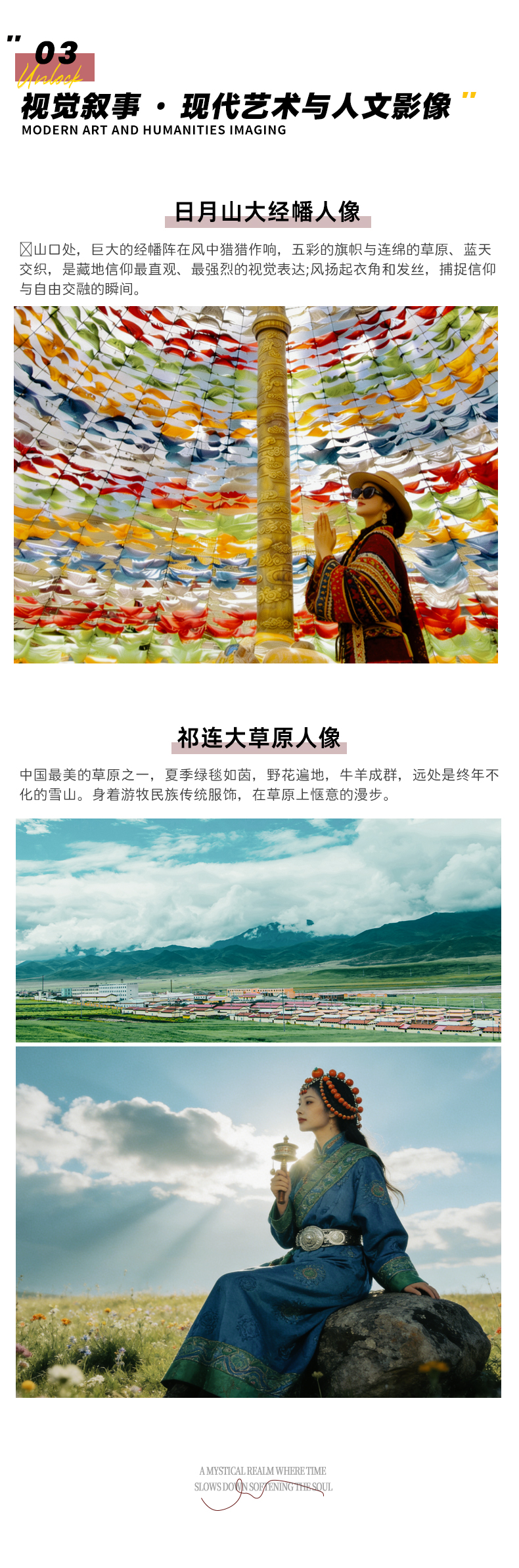 11 :30随后返程,今日返程容易堵车,我们改为路餐,出发不久会看到山秀草绿,牛羊遍野,油菜花盛开(花期在6月末到7月末),这就是中国最美的祁连山大草原的一部分——这里是【祁连大草原】,是西北环线难得的一抹绿色,远处的雪山若隐若现,一路上的荒漠戈壁看习惯了,眺望着这抹绿色有种说不上来的惬意。让我们在这私家牧场营地穿着【藏族服饰】,来一组高山牧民的大片吧!