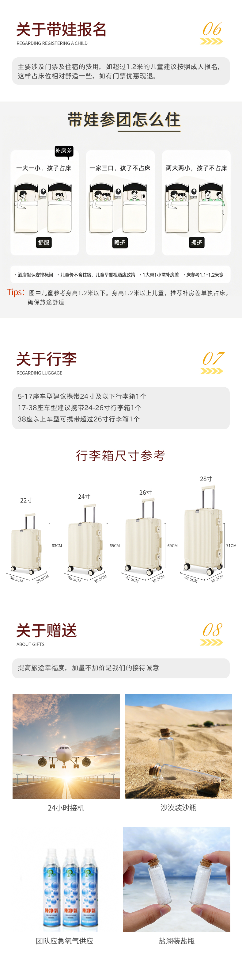 · 1.2米及以下为儿童,不占床位(与成人共用1张床铺)、免门票、免早餐、含车位、含司机服务、含保险、含赠送项目;