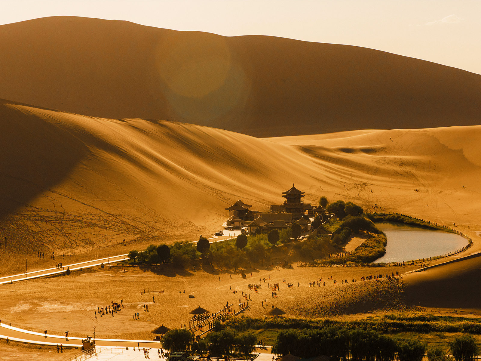 1、鸣沙山月牙泉距离市区不远,想多玩一会的小伙伴晚上可以自由活动随后自行返回酒店,太晚可能不太好打车,请您规划好时间。