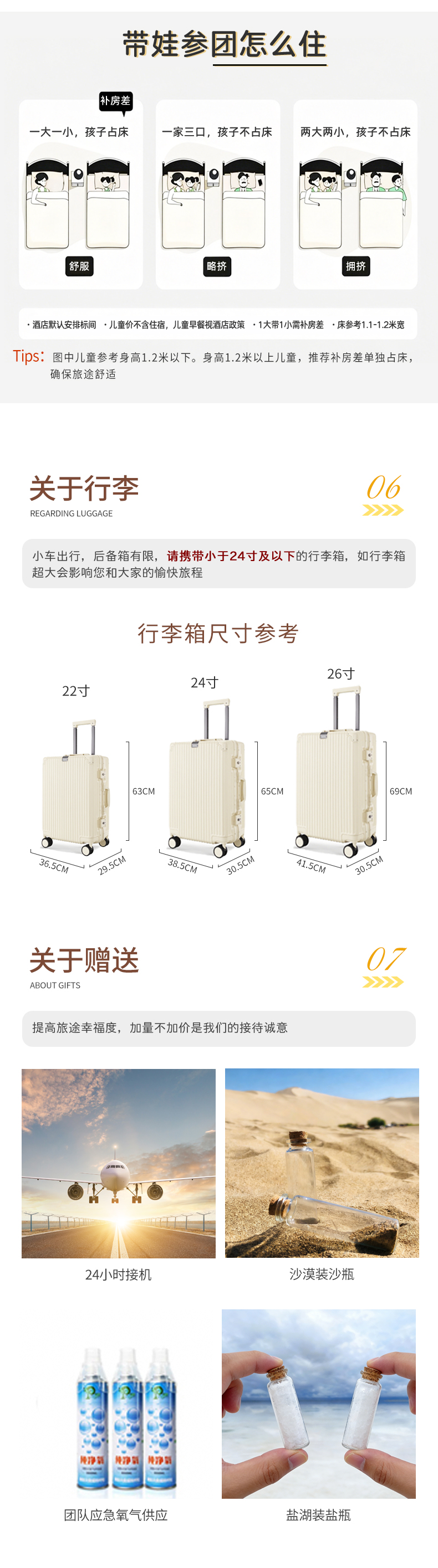 · 1.2米及以下为儿童,不占床位(与成人共用1张床铺)、免门票、免早餐、含车位、含司机服务、含保险、含赠送项目;