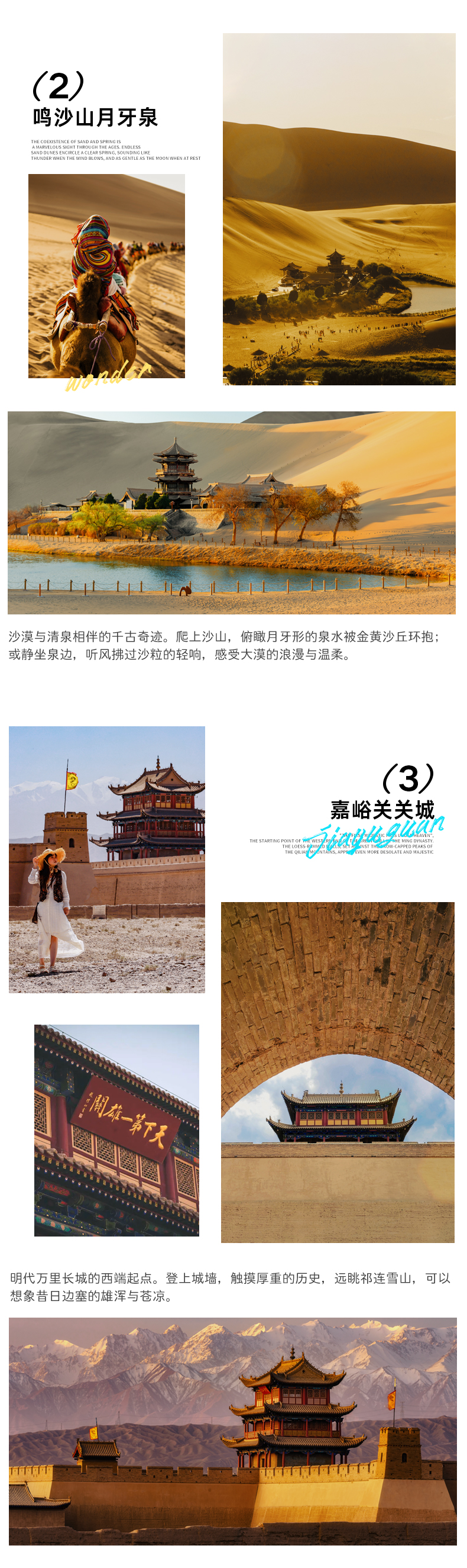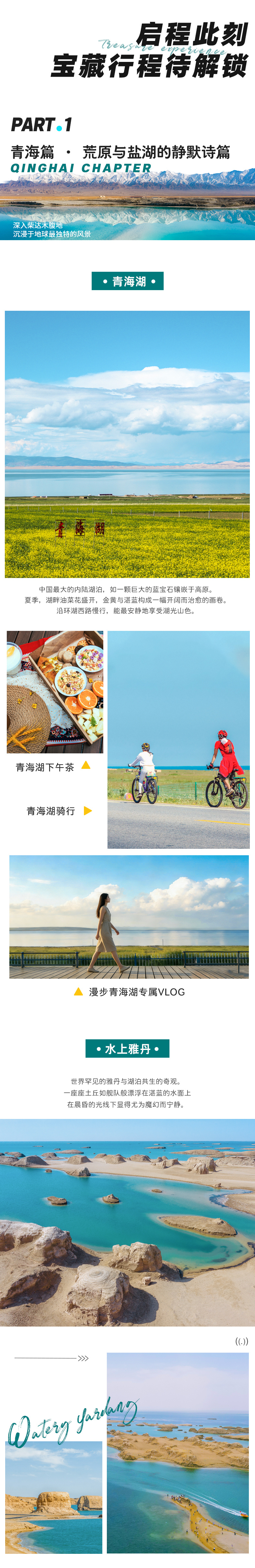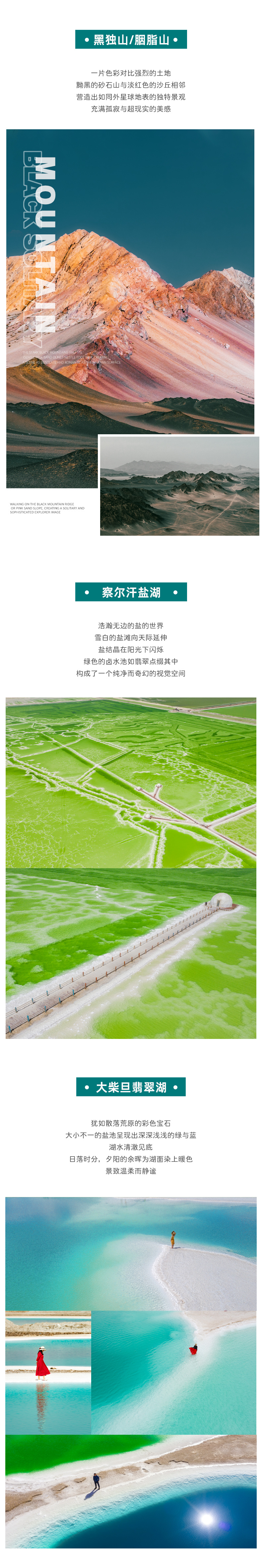 门票:察尔汗盐湖门票+环保车、黑马河观景台环保车、水上雅丹+环保车、黑独山环保车、大柴旦翡翠湖、鸣沙山月牙泉、嘉峪关关城、七彩丹霞+环保车