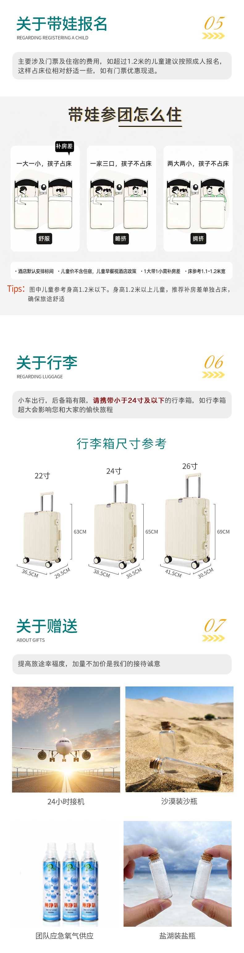 · 1.2米及以下为儿童,不占床位(与成人共用1张床铺)、免门票、免早餐、含车位、含司机服务、含保险、含赠送项目;