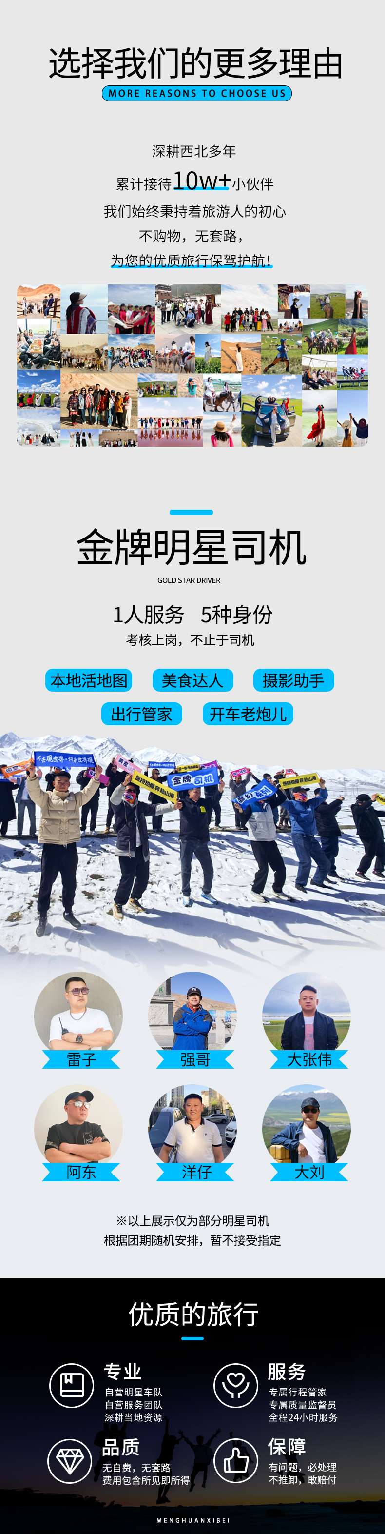 领队:司机兼管家,帮助大家购买门票,给团友游玩建议,无法进入景区和提供专业讲解等服务,敬请谅解;