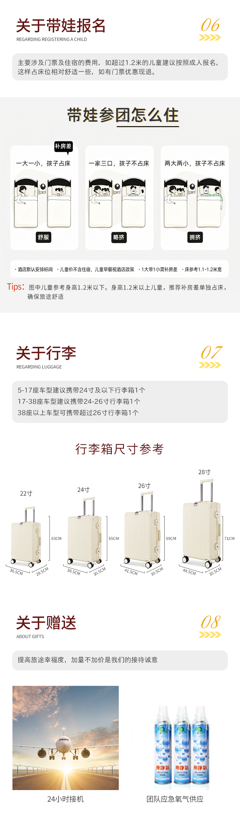 · 1.2米及以下为儿童,不占床位(与成人共用1张床铺)、免门票、免早餐、含车位、含司机服务、含保险、含赠送项目;