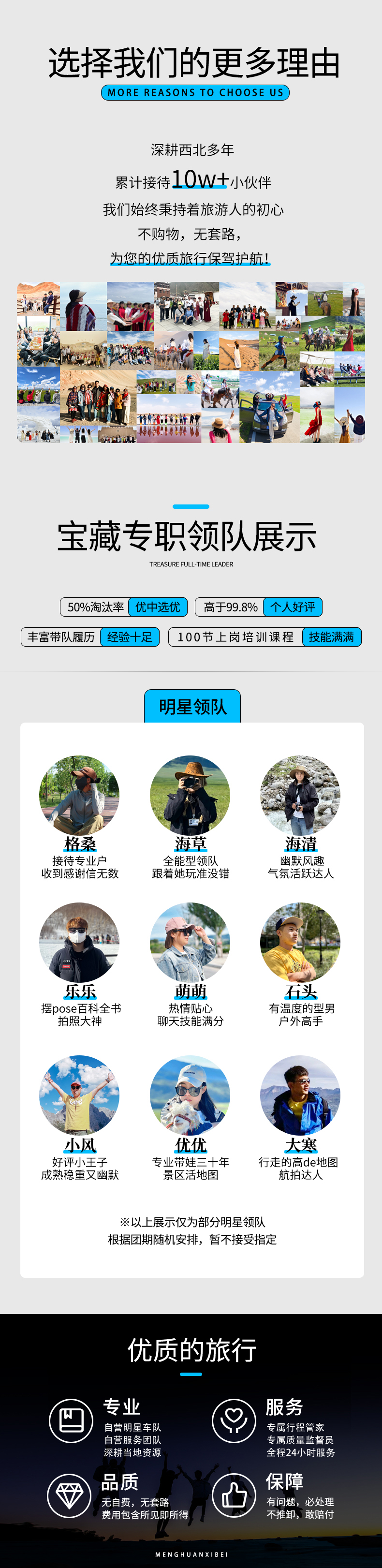 5、领队:司机兼管家,帮助大家购买门票,给团友游玩建议,无法进入景区和提供专业讲解等服务,敬请谅解;