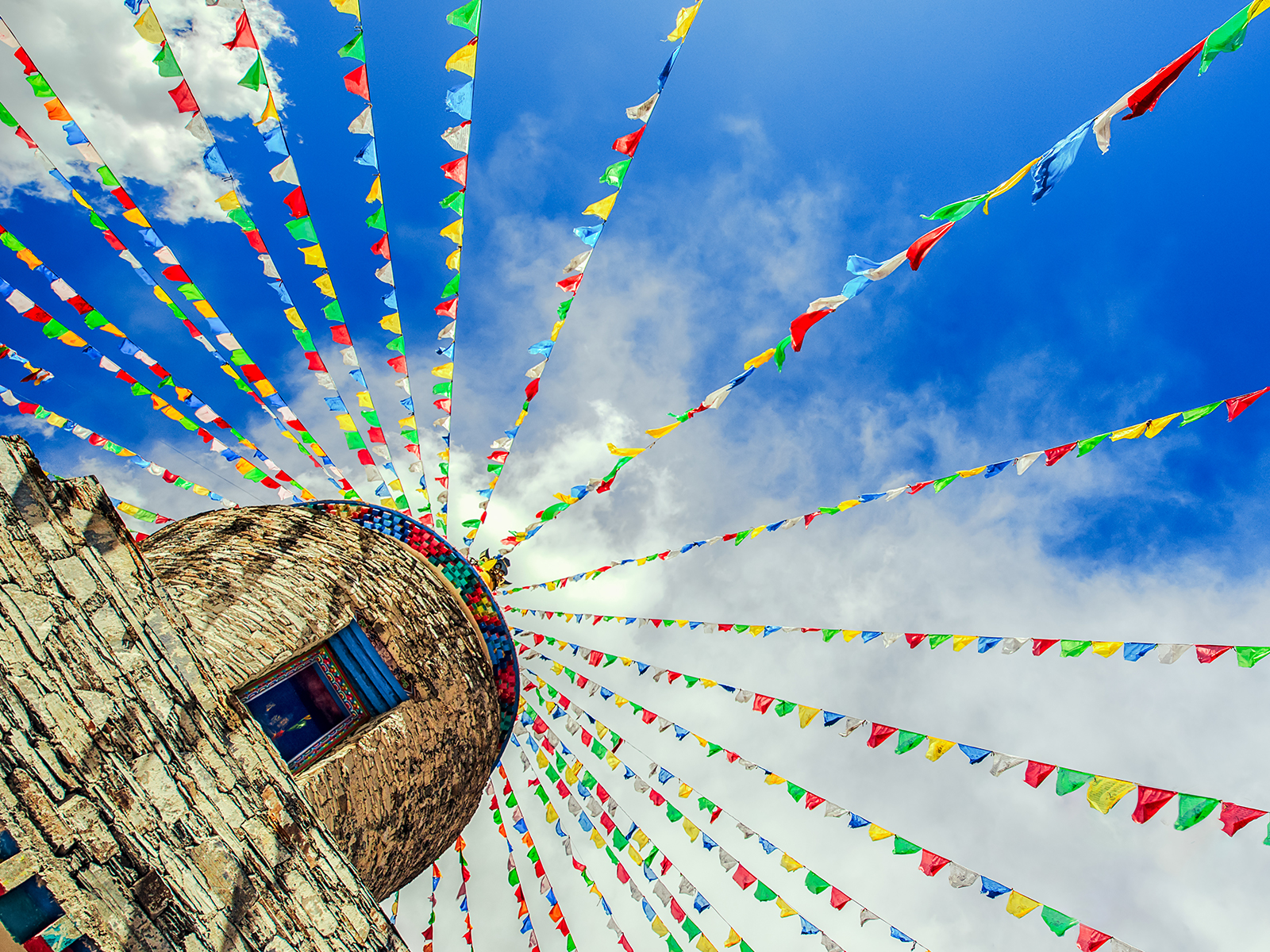 12 : 00适时午餐,随后赴【米拉日巴佛阁】,这里是米拉日巴佛阁是为纪念米拉日巴而修建的佛阁。这里也是藏传佛教噶举派(白教)在安多藏区的代表寺院。佛阁共有9层,每一层都是一个单独的佛堂,每一层代表着不同的教派,供奉的主尊均不相同。壁画、唐卡、塑像,都在这个九层的佛阁里独自发光。