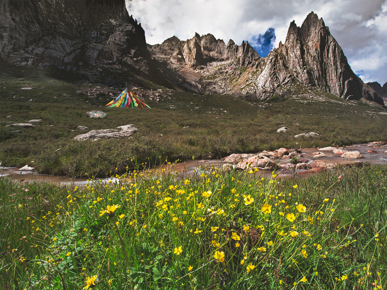 09:00抵达【莲宝叶则】,这里是藏区著名的神山,挺拨的千刃石峰是其雄伟的风骨,晶莹闪亮的湖泊是她宝石般多情的眼睛。世上的行者分两种,一种是来过莲宝叶则的,另一种是正在赶来途中的。与年保玉则同属巴颜喀拉山脉,一个在青一个在川。我们来到这片秘境中的秘境,朝拜这安多地区神山之首。