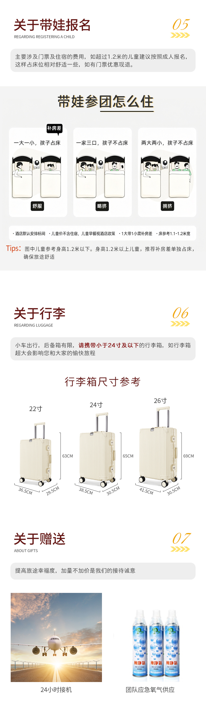 · 1.2米及以下为儿童,不占床位(与成人共用1张床铺)、免门票、免早餐、含车位、含司机服务、含保险、含赠送项目;