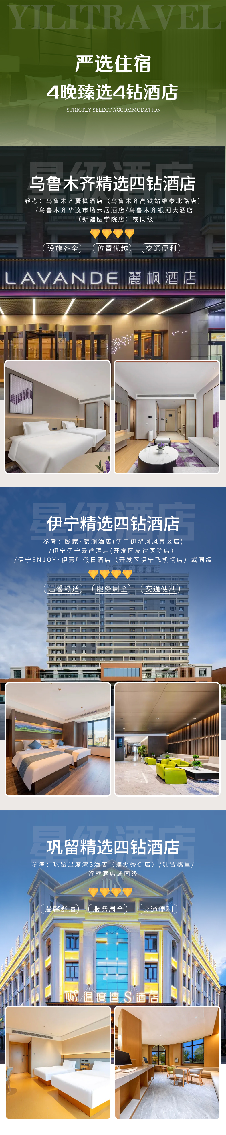备注:钻级标准参考携程钻级标准,未挂星。新疆经济较为落后,酒店较南方酒店略差,敬请谅解。