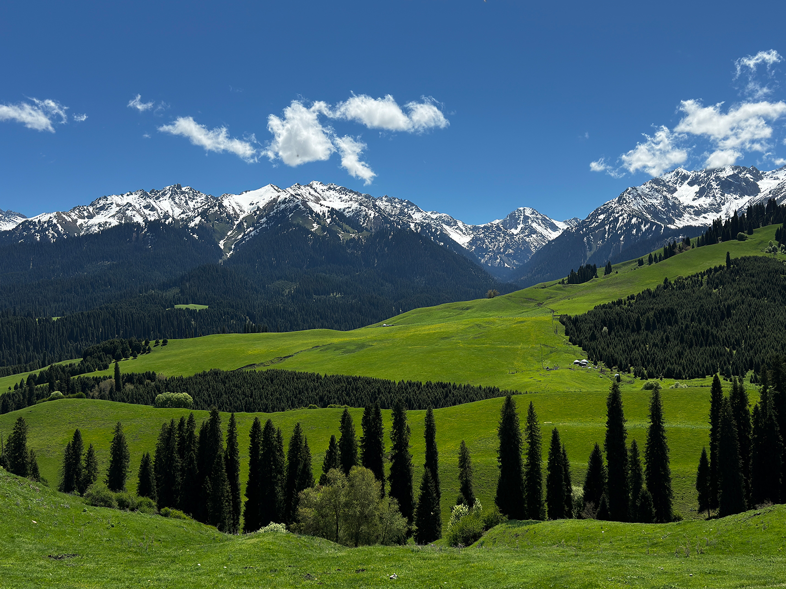 11:00 我们会走进近两年网络上很火的【恰西森林公园】,恰西国家森林公园是由古冰碛堰塞湖形成的自然风景区,主要景观有林海松涛、石门垂流、高山草原风光。今天全天深度游玩恰西,我们安排了【骑马体验】约1小时、【旱地拔葱】视频拍摄,刷爆朋友圈!当云杉的绿浸染山谷,雪山的白点亮天际,溪流的银穿梭于草原,恰西便成了天神失手打翻的调色盘。这里是伊犁河谷的隐秘画室,每一帧都是自然的笔触,每一步都是诗行的韵脚。今天我们一整天得时间都可以在这里感受远离人群,步入大自然的怀抱。
