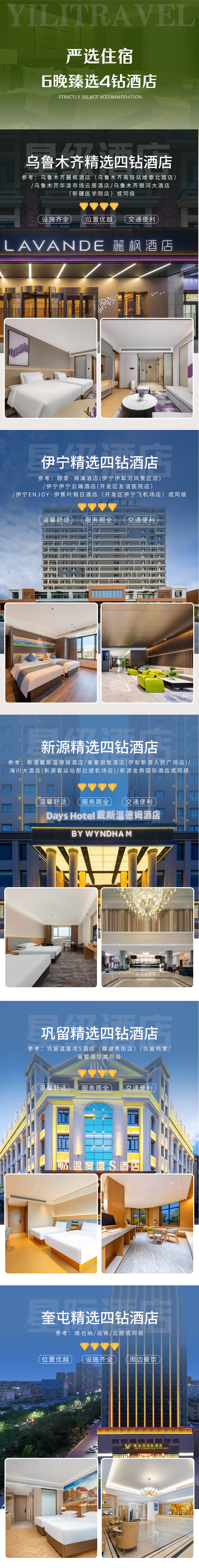 备注:钻级标准参考携程钻级标准,未挂星。新疆经济较为落后,酒店较南方酒店略差,敬请谅解。