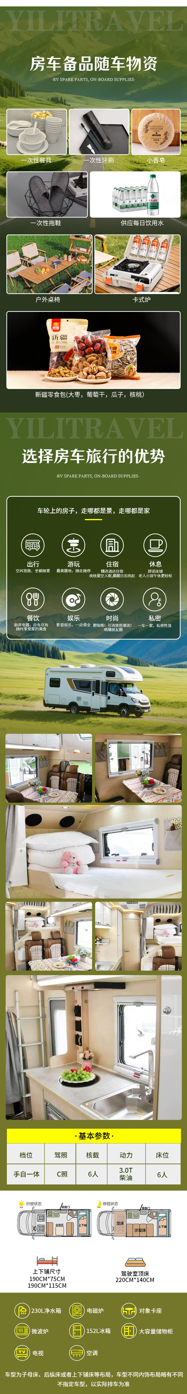 3、用车:一团一房车,选用依维柯3.0T房车,包含油费、过路费、司机食宿费用;