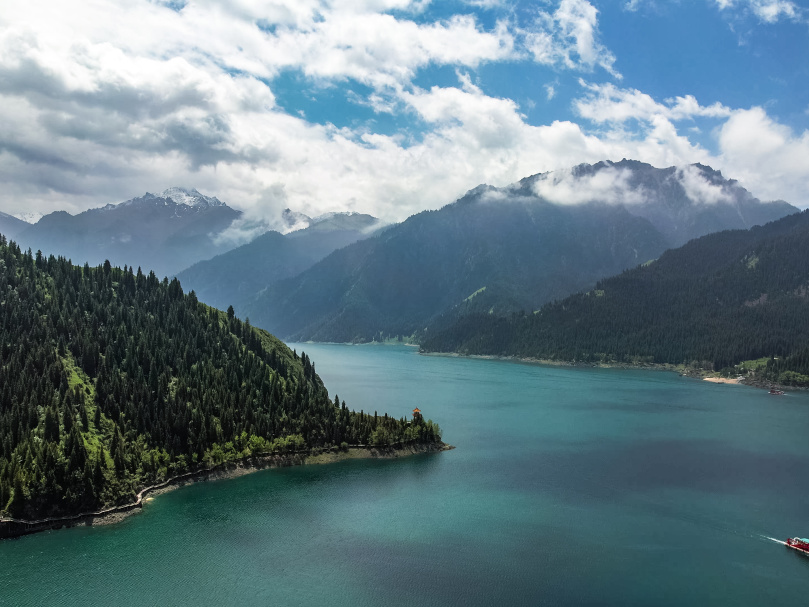 10:00 抵达著名的旅游胜地【天山天池】湖水晶莹如玉,倒映着博格达峰,四周群山环抱,山上布满了挺拔、苍翠的云杉、塔松,犹如仙境。推荐下午晚些时候去,因为随着光线的变化,湖水会呈现近处碧绿远处蓝色的样子。欣赏美景后出发。