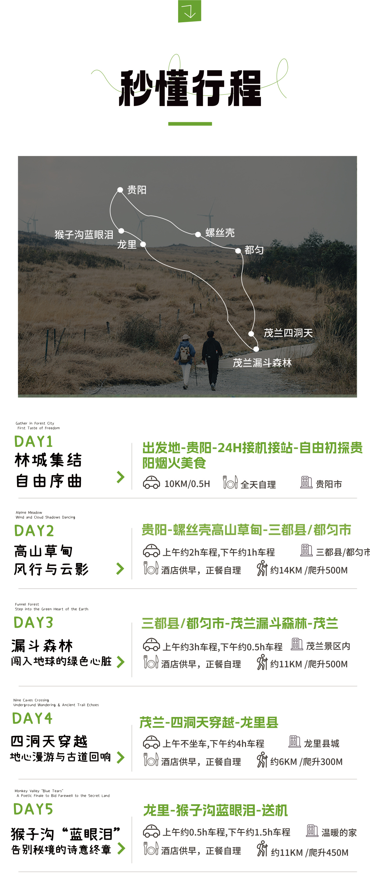①今天的徒步路程约11公里,累计爬升约500米(下降约350米),以喀斯特地形地貌为主,需要穿越密林山路。