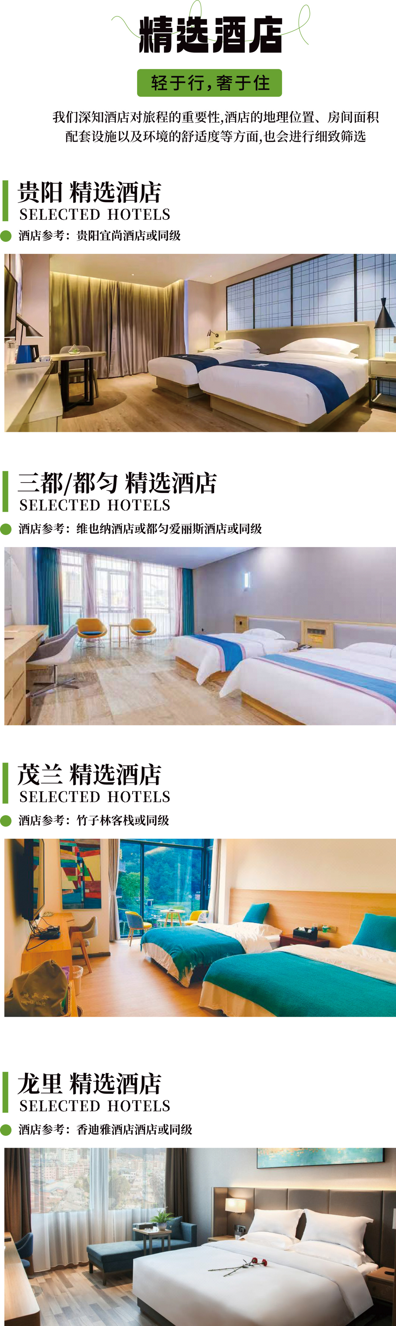 ➁ 住宿:贵阳1晚+都匀1晚+茂兰1晚+龙里1晚酒店(2人/间)