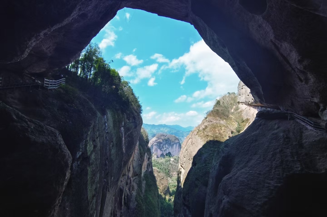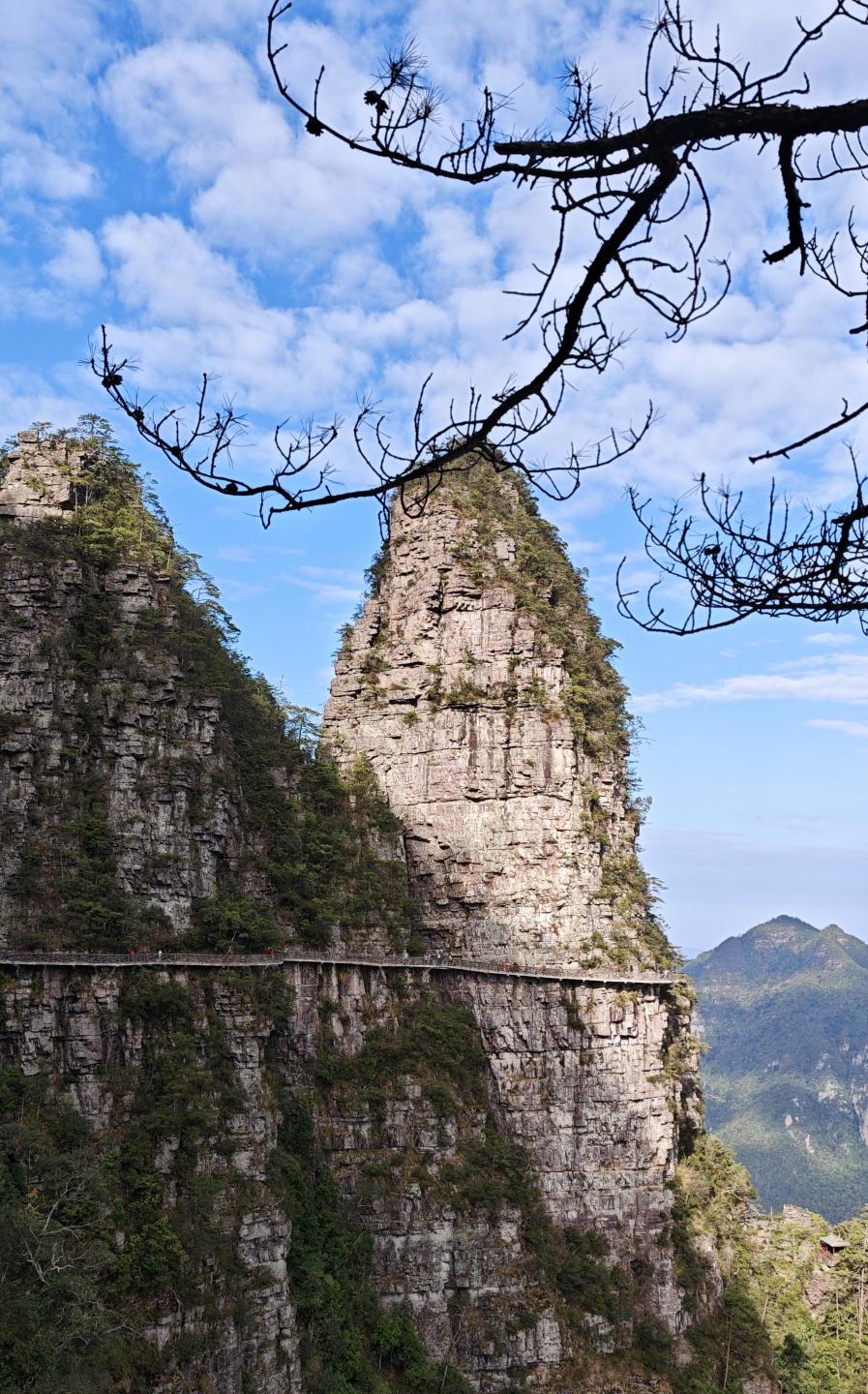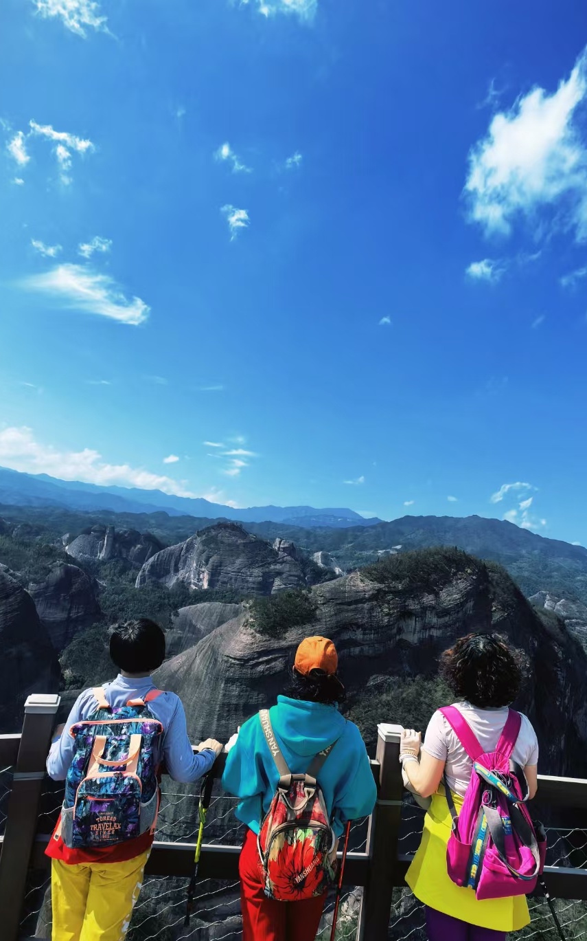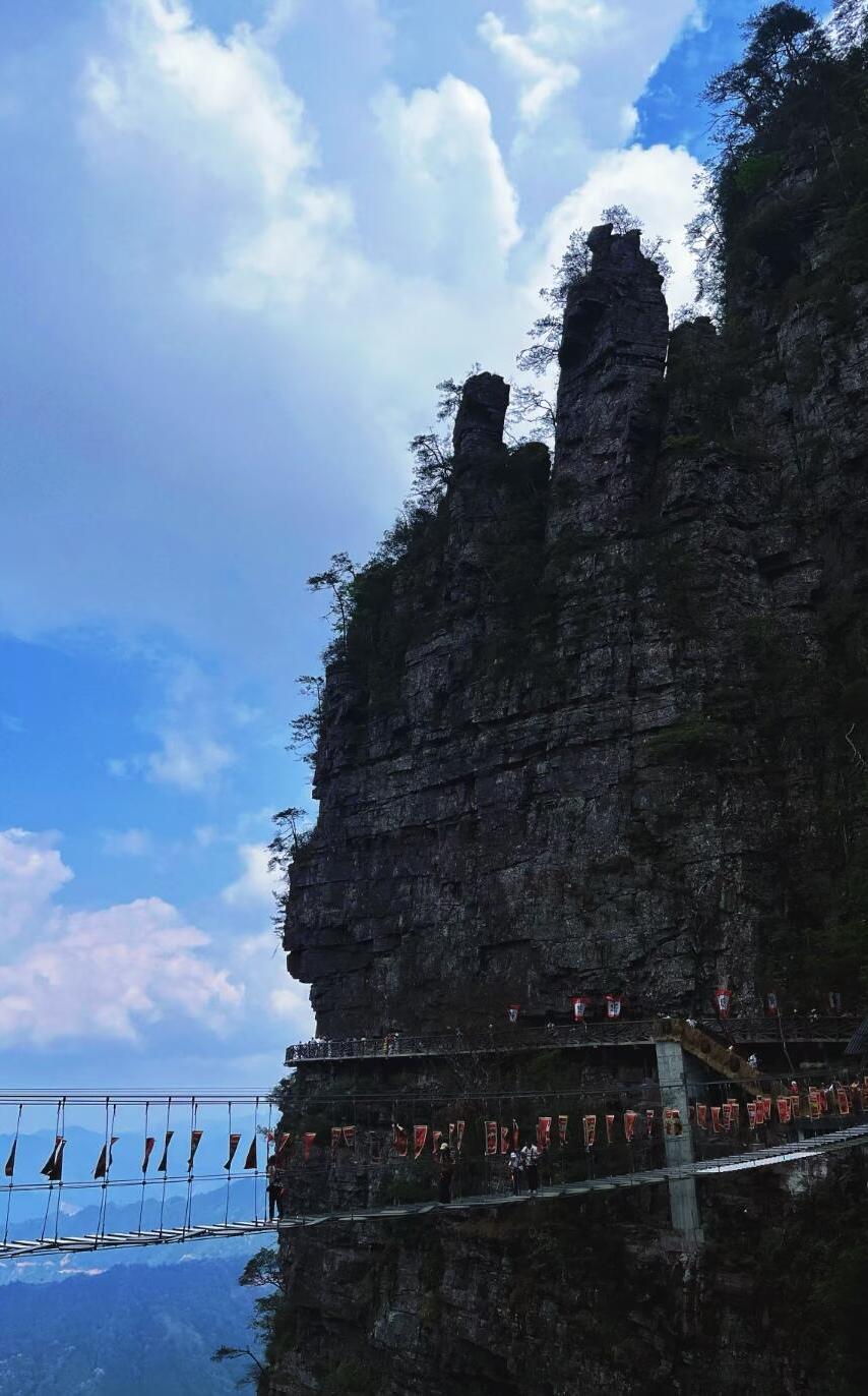 徒步组:群螺观天-龙脊天梯-凌渊谷-跃龙台-一脚踏两省-龙头香-虎头领,公里数约10km, 景区步道+栈道,拔高约500米;