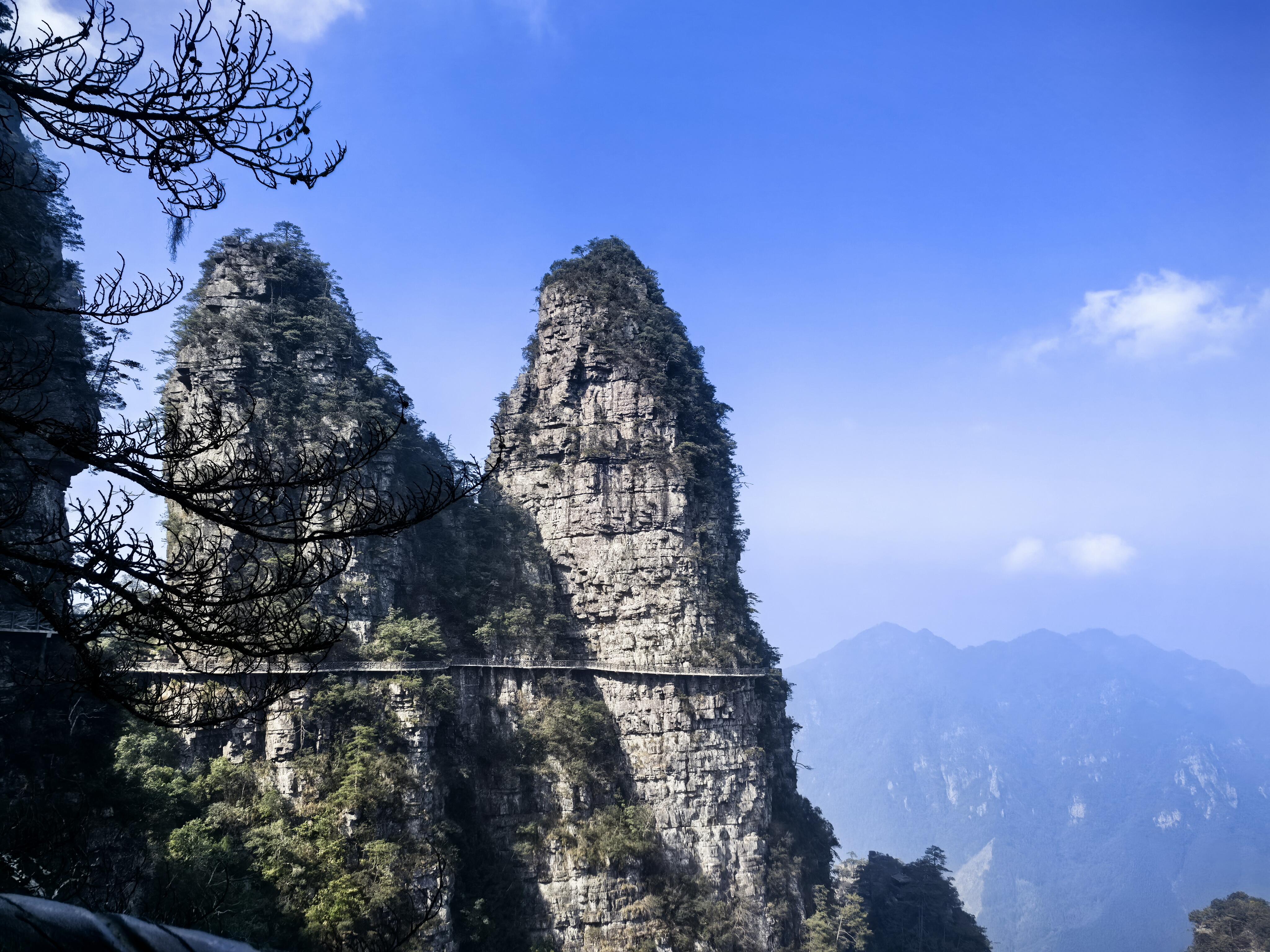 石壁陡峭、奇峰耸立的神奇景观。