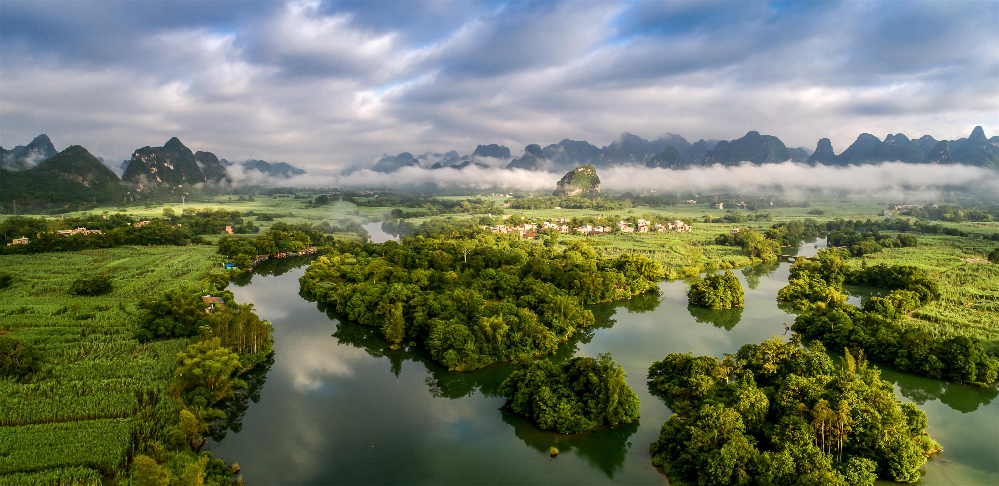 明仕田园位于广西大新县堪圩乡,是典型的喀斯特地貌田园风光带。5公里徒步线路穿行于如诗如画的稻田、翠竹、溪流与壮族村舍之间,远眺峰林倒映水中,近听鸟鸣蛙唱,四季景色各异——春有油菜花海,夏为碧绿稻浪,秋染金黄田野,冬显静谧水墨意境。沿途可探访壮族民居、体验农耕文化……