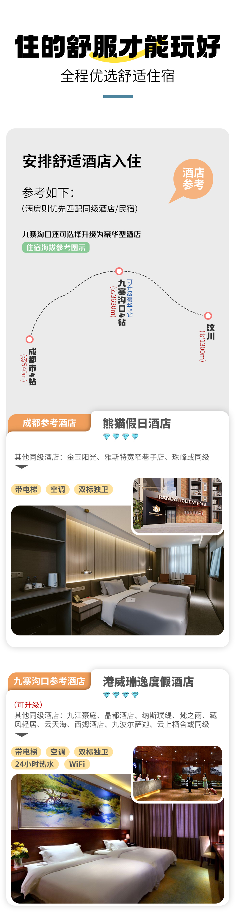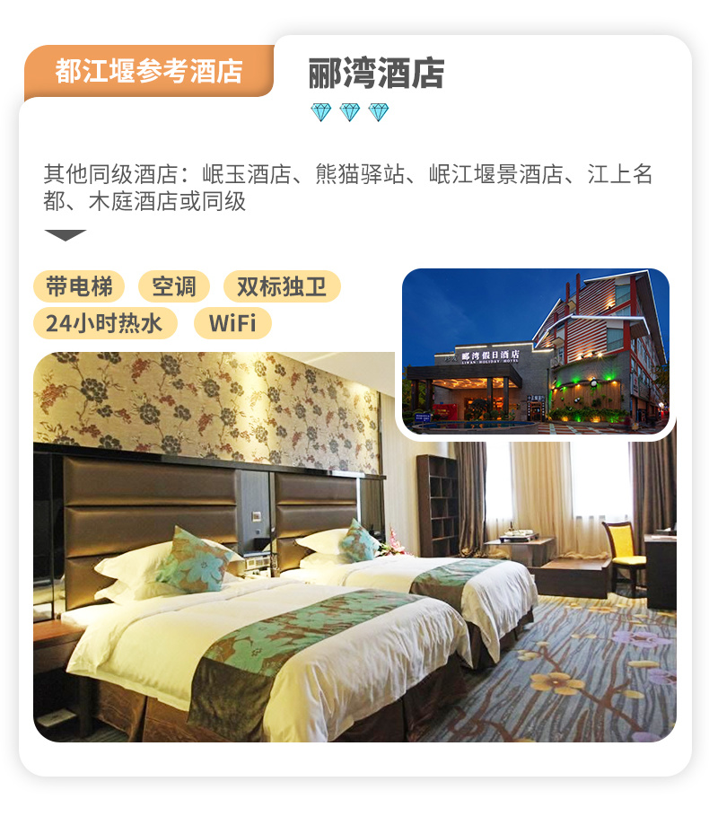 全程4晚住宿(含成都集合日赠送1晚酒店、不住不退不换不指定)具体了解团期价格。