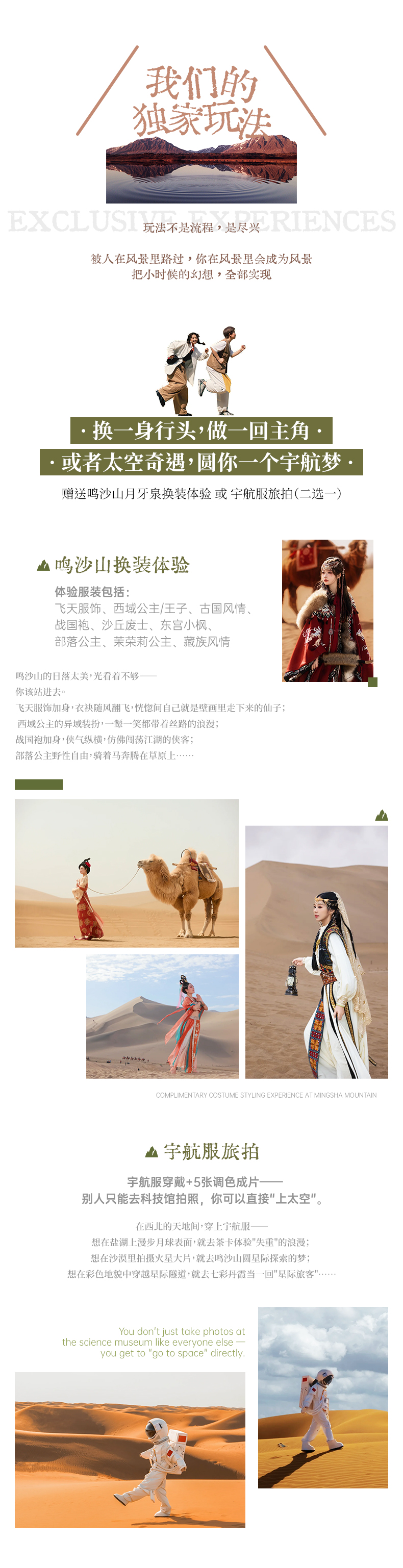 1、赠送换装体验或宇航服旅拍(二选一),参考如下: