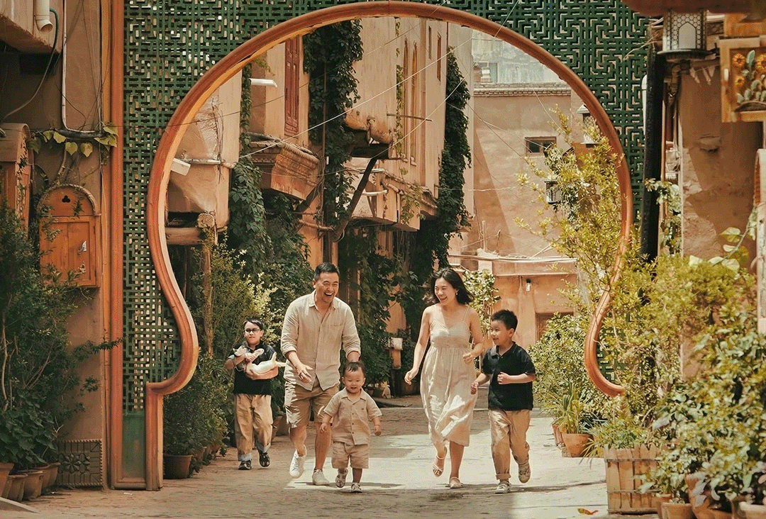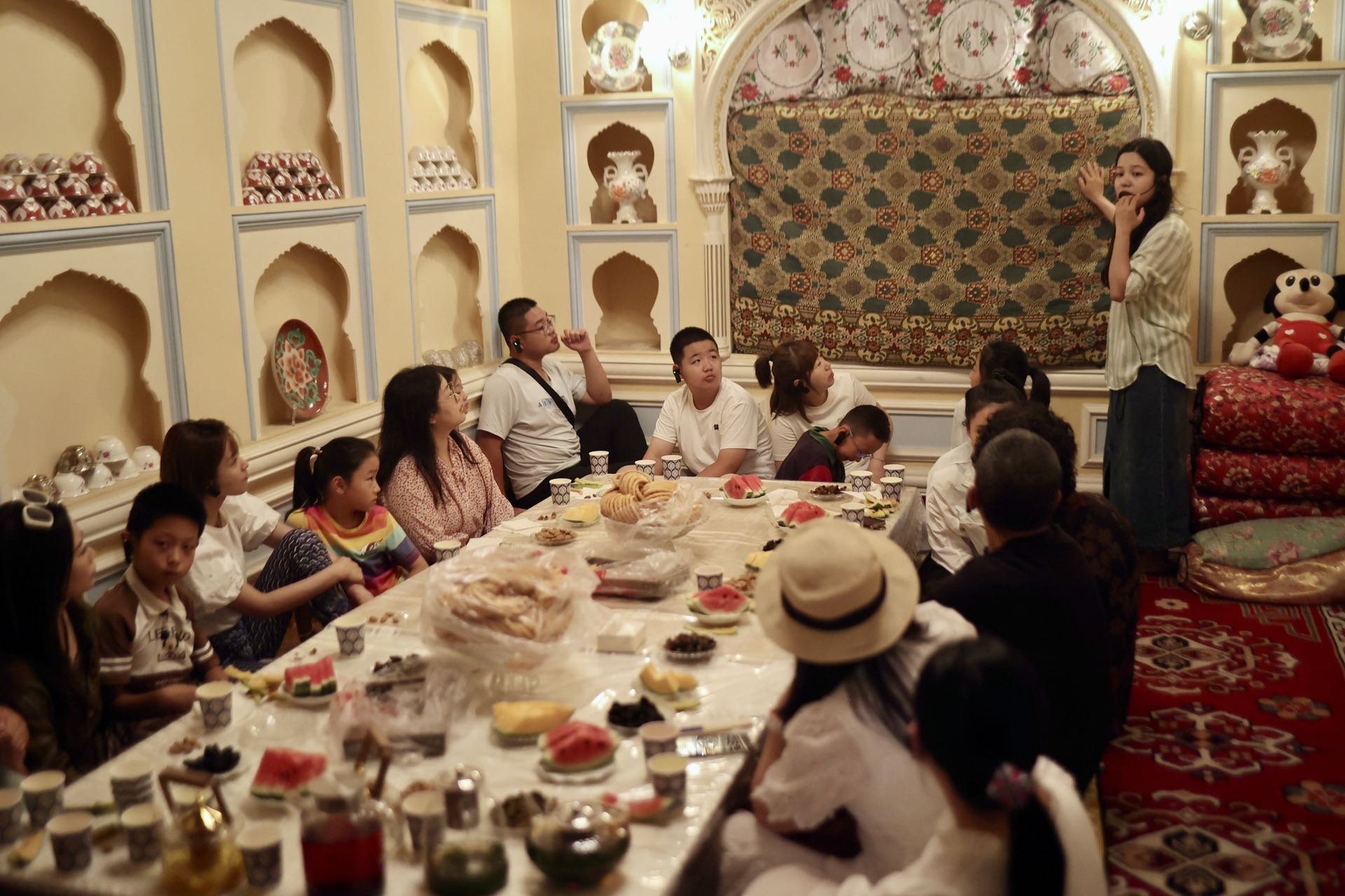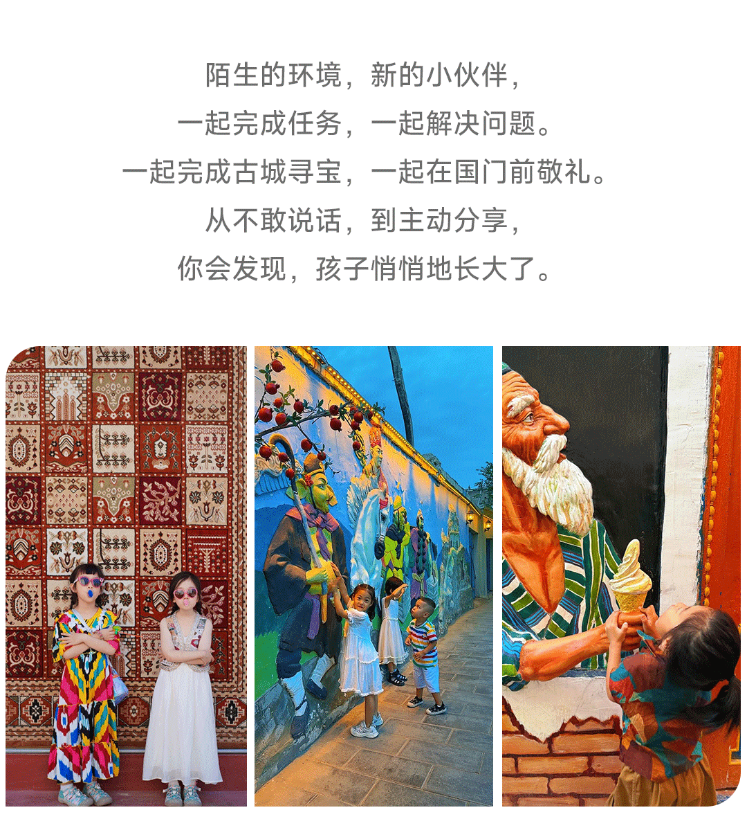 下午抵达喀什古城,完成定向寻宝,大小朋友共同打卡古城大小角落,寻觅宝藏,回酒店后协作完成"丝路长卷"拼贴画。
