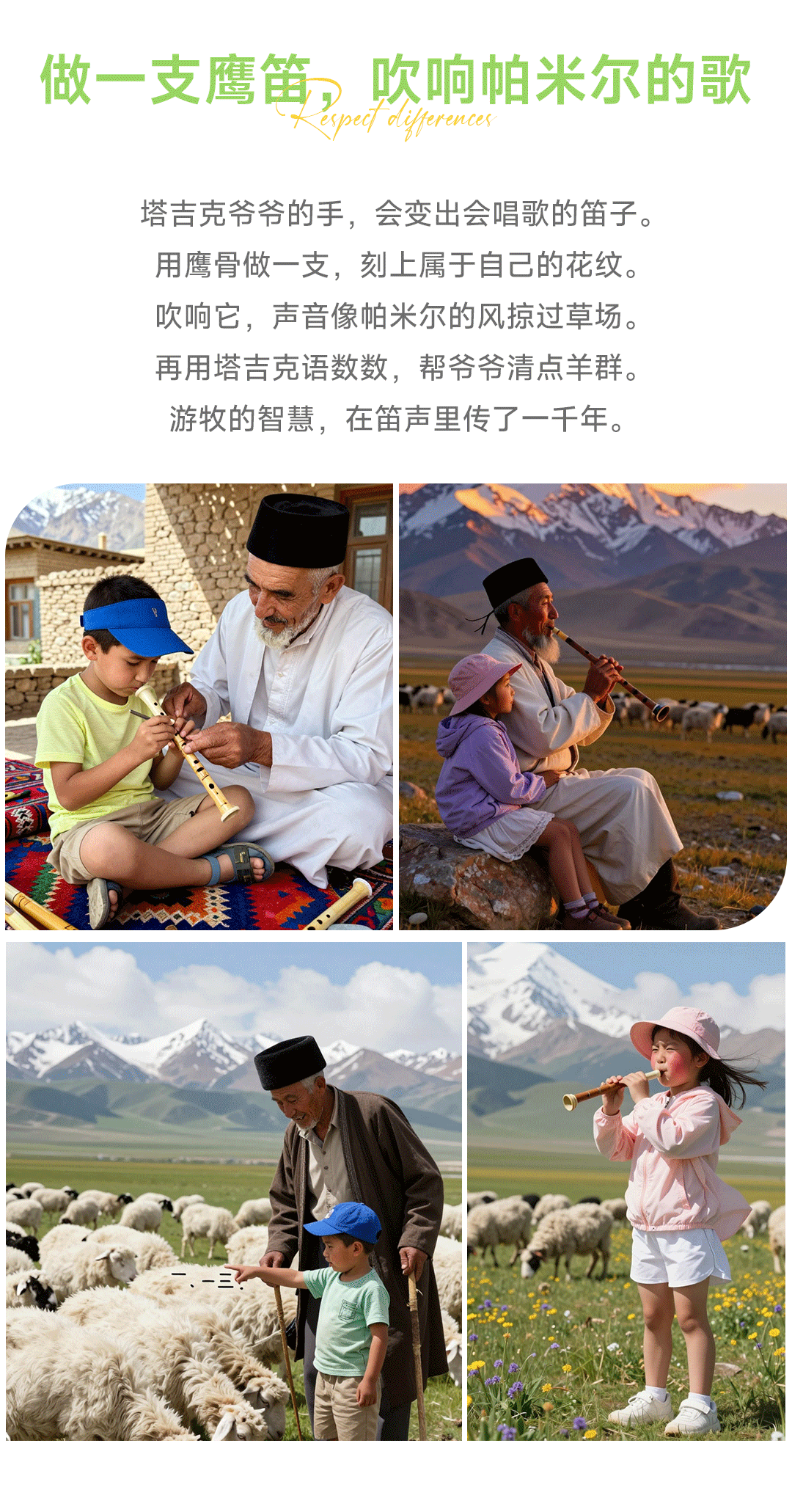 前往塔吉克家访,学习塔吉克舞蹈,了解塔吉克生活习惯,品尝塔吉克下午茶,制作非遗-鹰笛。