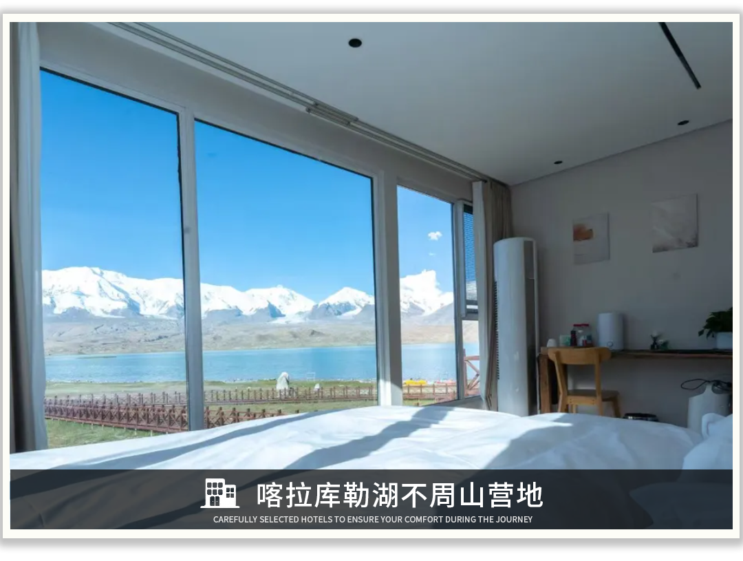 1.全程8晚住宿:乌鲁木齐当地精品酒店1晚,尉犁当地精品酒店1晚,库车当地精品酒店1晚,阿克苏当地精品酒店1晚,喀什当地精品酒店2晚,不周山当地轻奢营地1晚,塔县当地精品酒店2晚。